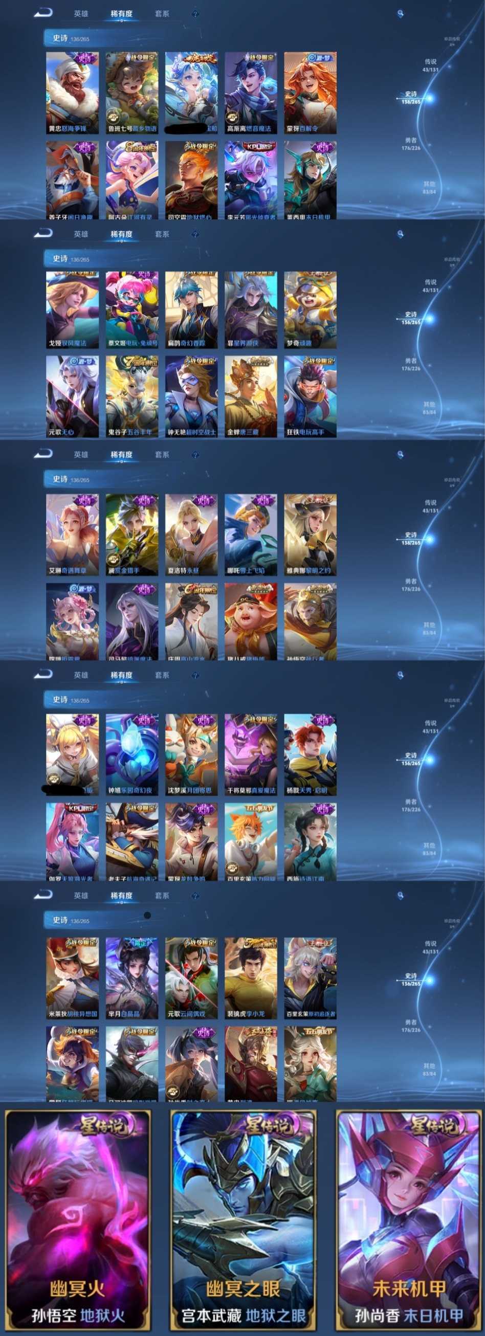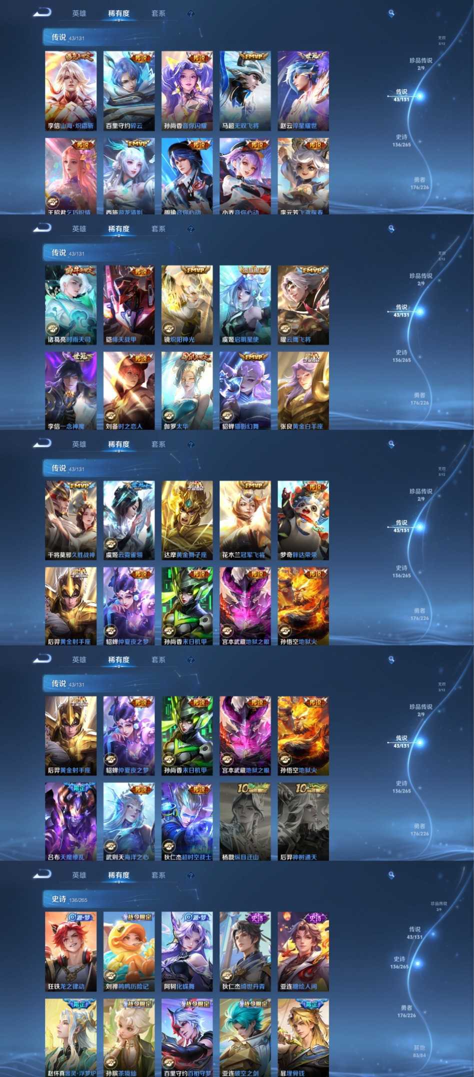 时间到了还登录白玩或者顶号全部改密拉黑处理永不解除,顶号机器会秒禁玩改密,顶号不仅拉黑还没得玩,赚三两块不容易,请理解谢谢。 ❤❤❤❤❤❤❤❤❤❤❤❤❤❤❤❤❤❤❤ 请勿开挂,挂机,送头,骂人,撤单后游戏等如有违规永久拉黑永不解除。 重置二级密码不要费劲了,号主每天都会上号查看,多行不义必自毙,人在做天在看,多做好事多自律,少做缺德事。 该号英雄128个皮肤451个,典藏8个,无双3个,珍品传说2个,星传说3个,传说43个,史诗136个,祝你游戏愉快~