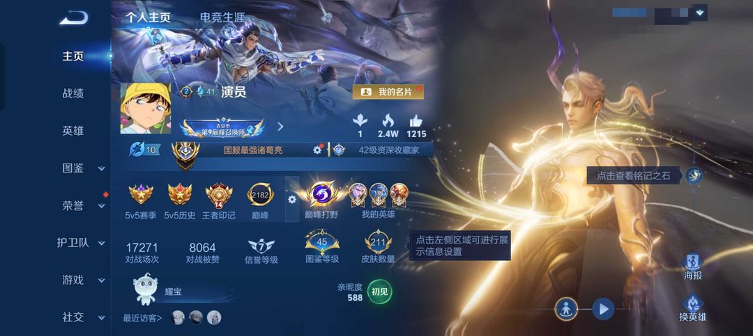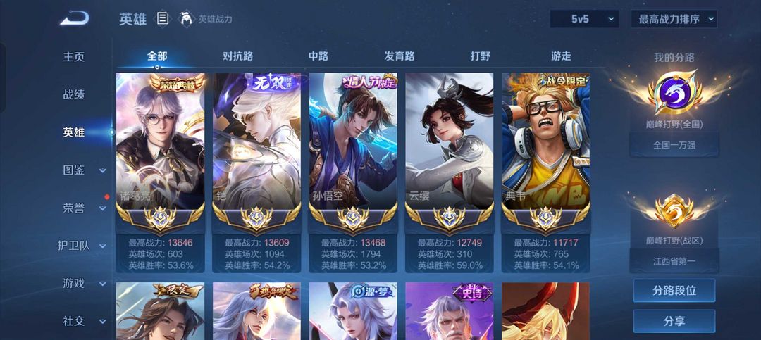 - 巅峰榜排名:1名/1名/1名/1名/1名|对抗路/打野/中路/游走/发育路