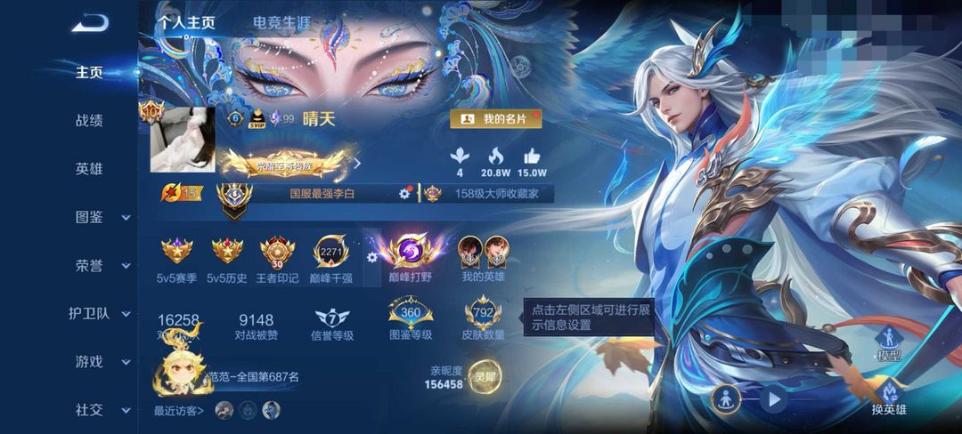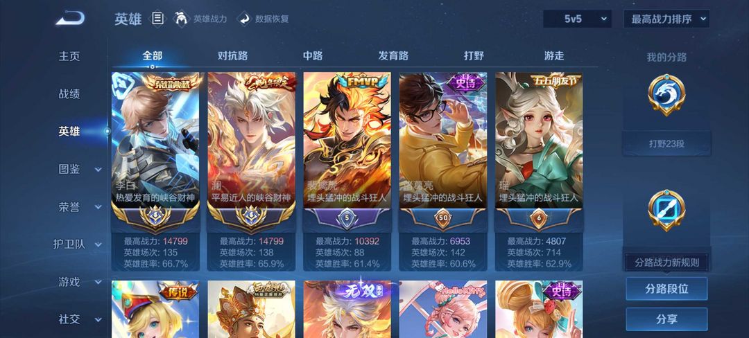 - 巅峰榜排名:1名/121名/1名/1名/1名|对抗路/打野/中路/游走/发育路