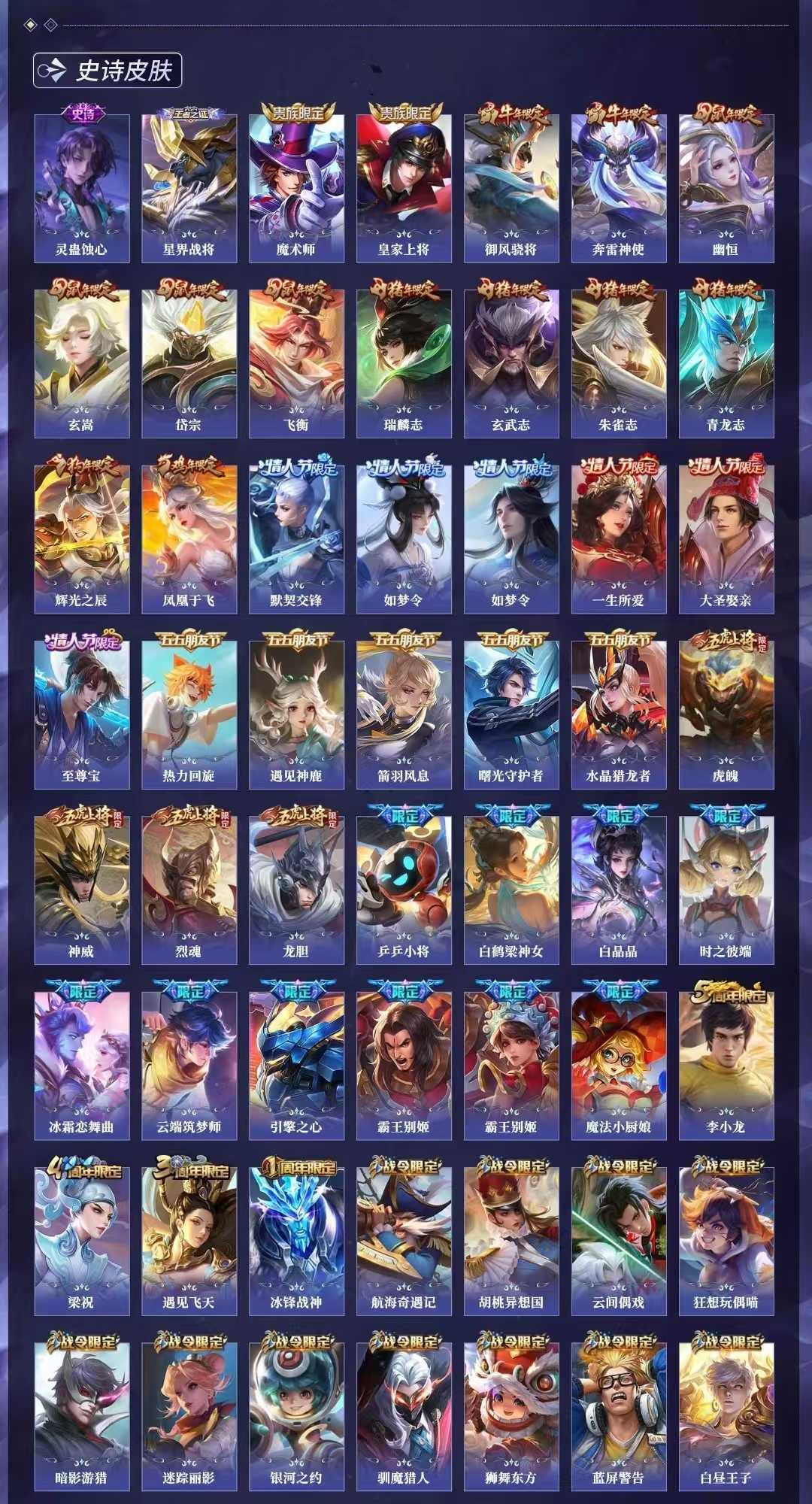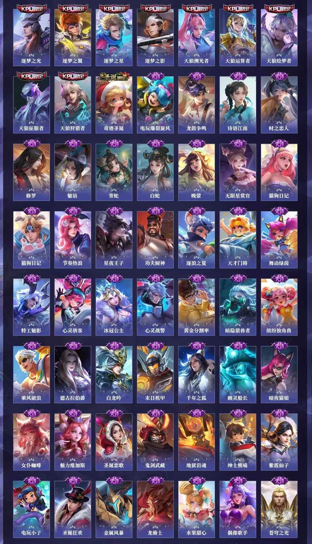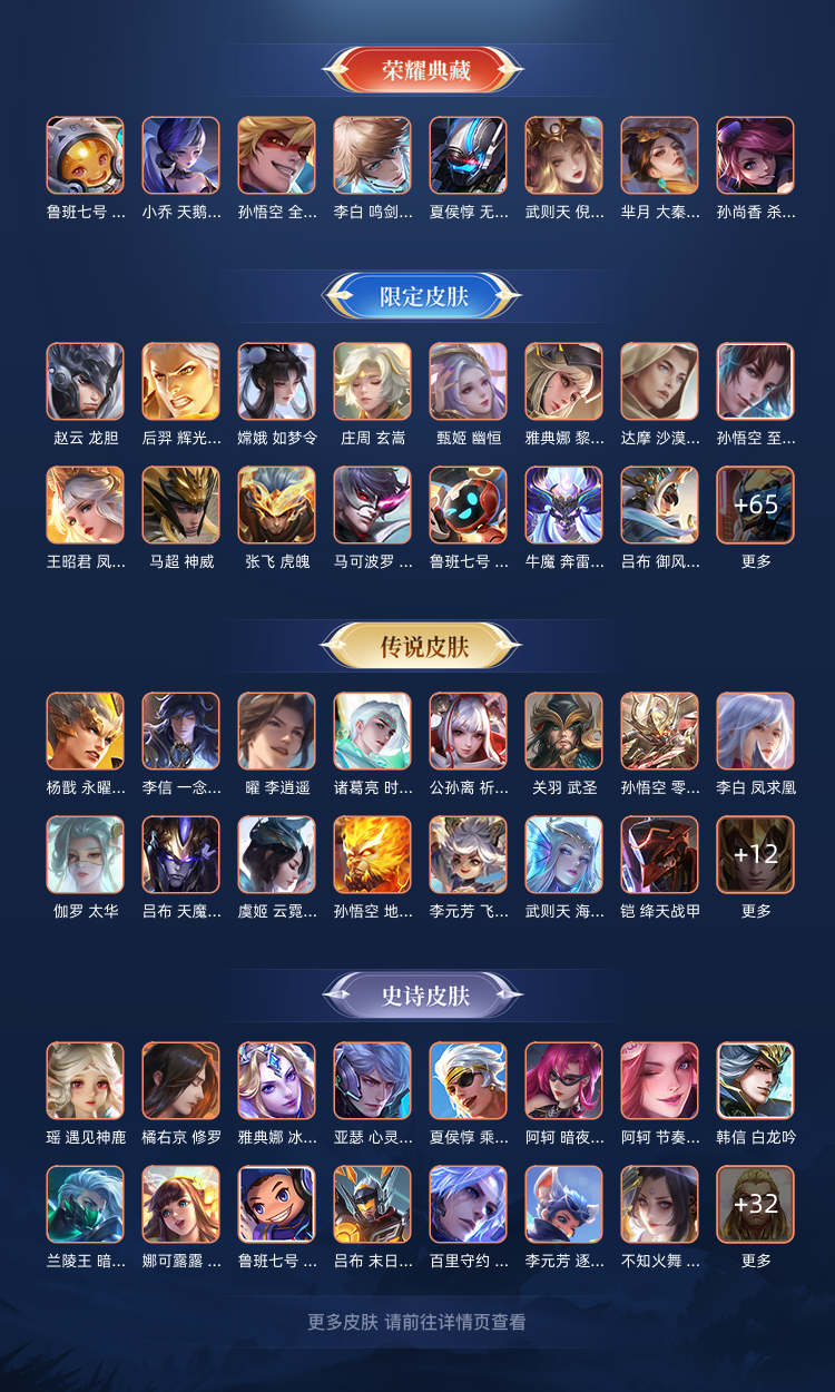 【C65】贵族V10~390皮肤9典藏祈雪灵祝,武圣,神威,至尊宝,天魔缭乱,凤求凰,白虎志,梅西,全息碎影天鹅之梦无限飓风号,倪克斯神谕,大秦宣太后,星空梦想,杀手不太冷【全牛年,全五虎上将,全五岳,全五兽】