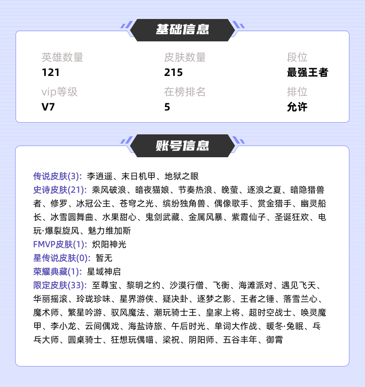 老牌良心国服商户 信誉保证 抖音快手搜索王者荣耀脱俗 大量热门在榜国服小国 大国 应有尽有双区都有 百段主播 logo 职业 所有账号禁止开挂 禁止巅峰赛 否则追究法律责任到底 所有账号已在武汉市公安局申报虚拟财产保护 所有开挂开美化包等 第三方违规软件导致账号封禁的 将会联合警方平台经理追查 禁止开挂 否则追究法律责任到底 注意事项: A.游戏过程中请不要恶意挂机或者不文明发言B.恶意挂机、顶号等行为将被拉黑无法再次下单C.进入游戏后中途请勿退出登陆,否则无法再次上号D.部分账号由于异地登录可能会出现密码错误提示,通常再尝试5-6次后可上号。文明租号,谢谢! 恶意撤单永久拉黑 毁号,涉及毁坏虚拟财产罪及计算机安全罪,请文明游戏素质游戏,让我们共建美好租号平台 祝租过此号老板事业蒸蒸日上、财源广进! 管理员将24小时对账号进行后台监控!
