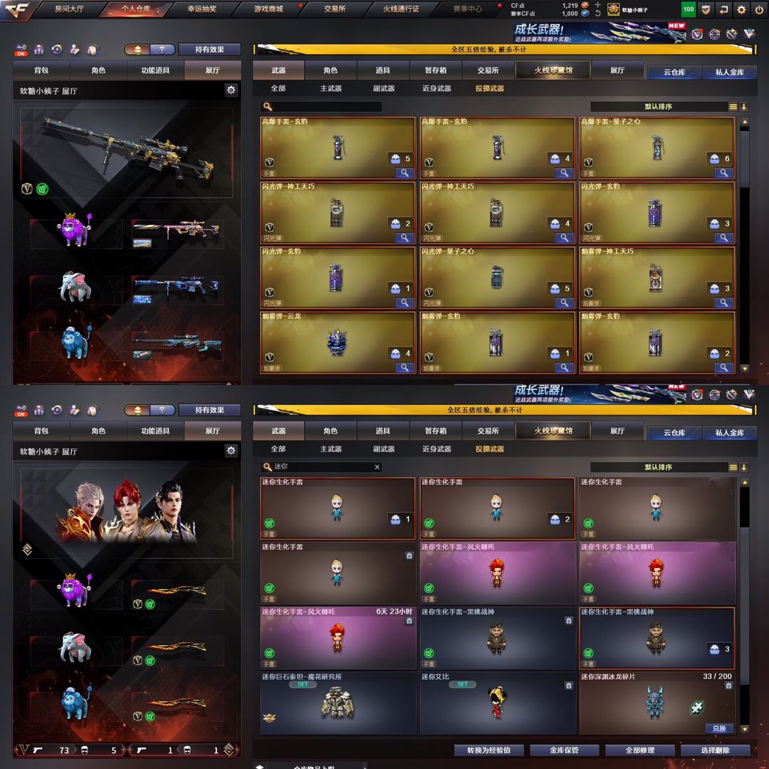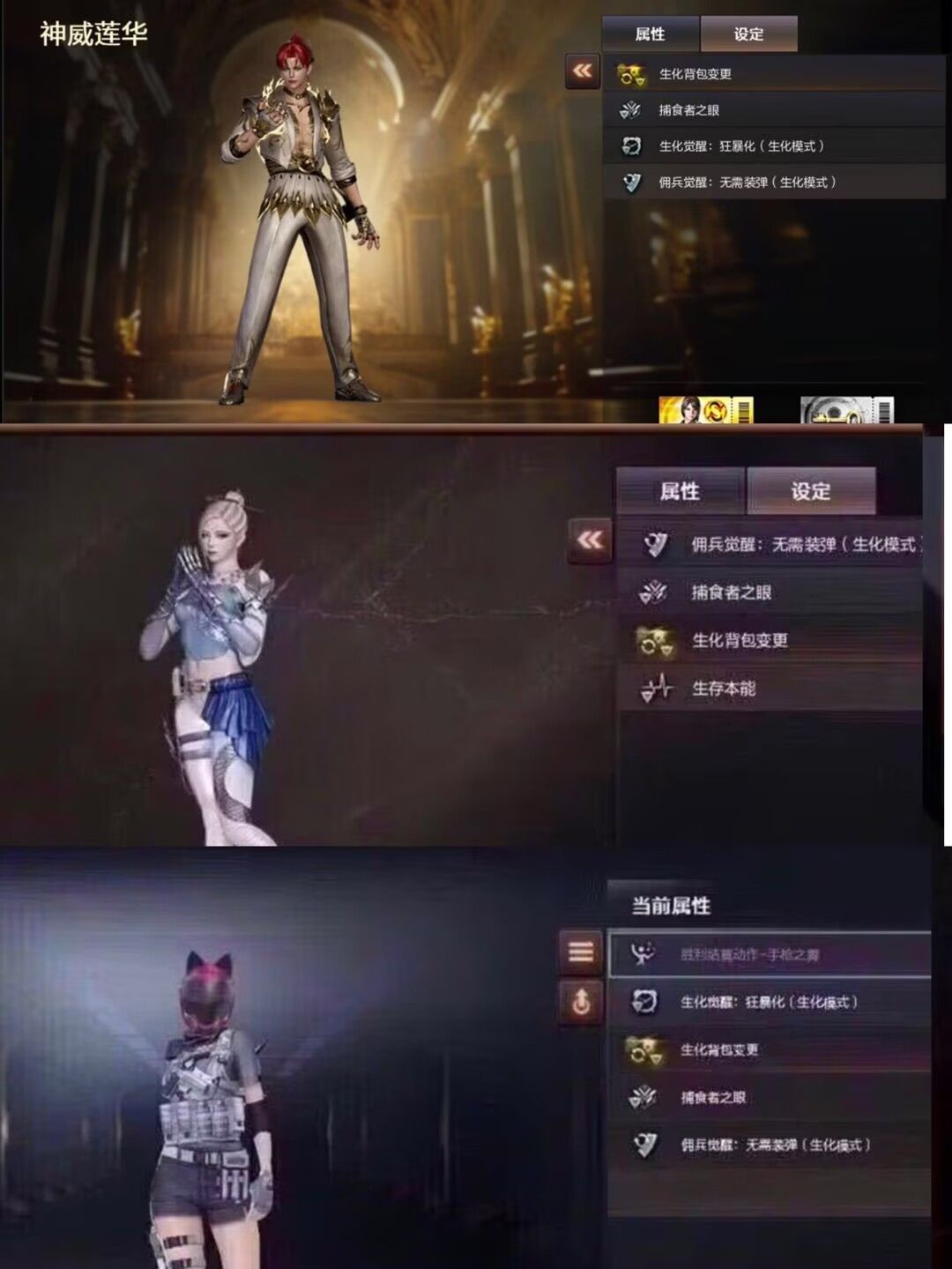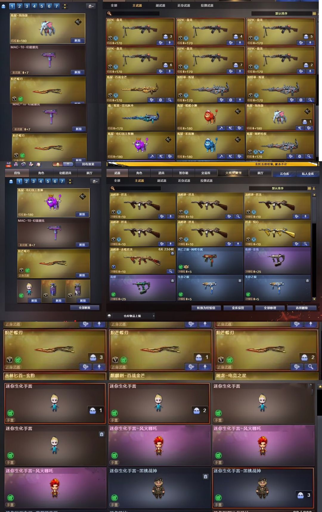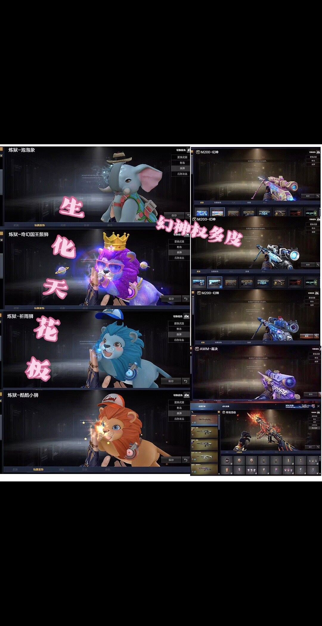 首发幻神权天花板、神威莲华传说浩劫-泡泡象-国王狮子加2头狮子4把蝴蝶刀-全猎手皮全道具生化装备道具全拉满-生化爆破全能天花板--- -发现乱撤单一率永久拉黑----大家不要乱刷属型。够你们背包来回切换/ 泡泡象奇幻狮子2000发子弹----V角色每天都有一次免费选择属性的机会,生化常用属性【生化背包变更,捕食者之眼-无需换弹,狂暴化,移动速度,生存本能】、尽量换这几个生化属性,老铁们可根据需要选择其他角色刷属性,觉得好的老铁们可进行收藏账号,收藏之后在租号玩网页版或手机APP上租号能便宜很多,注各位玩的开心,快乐
