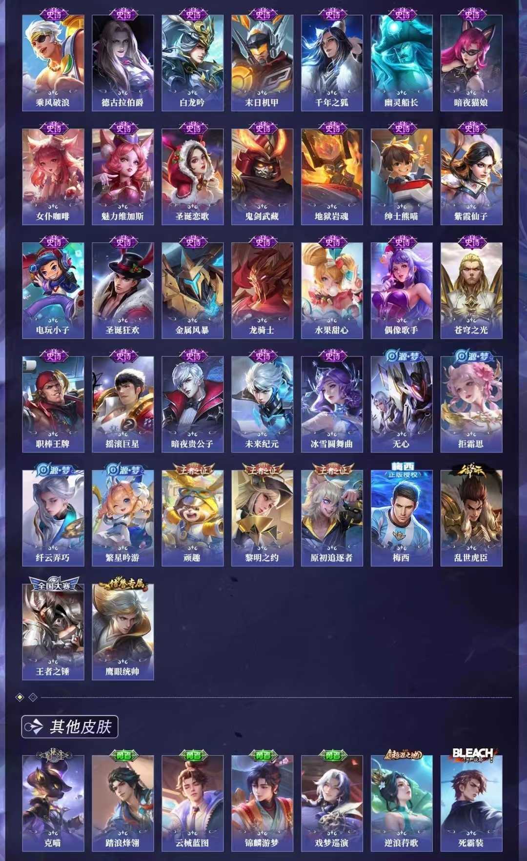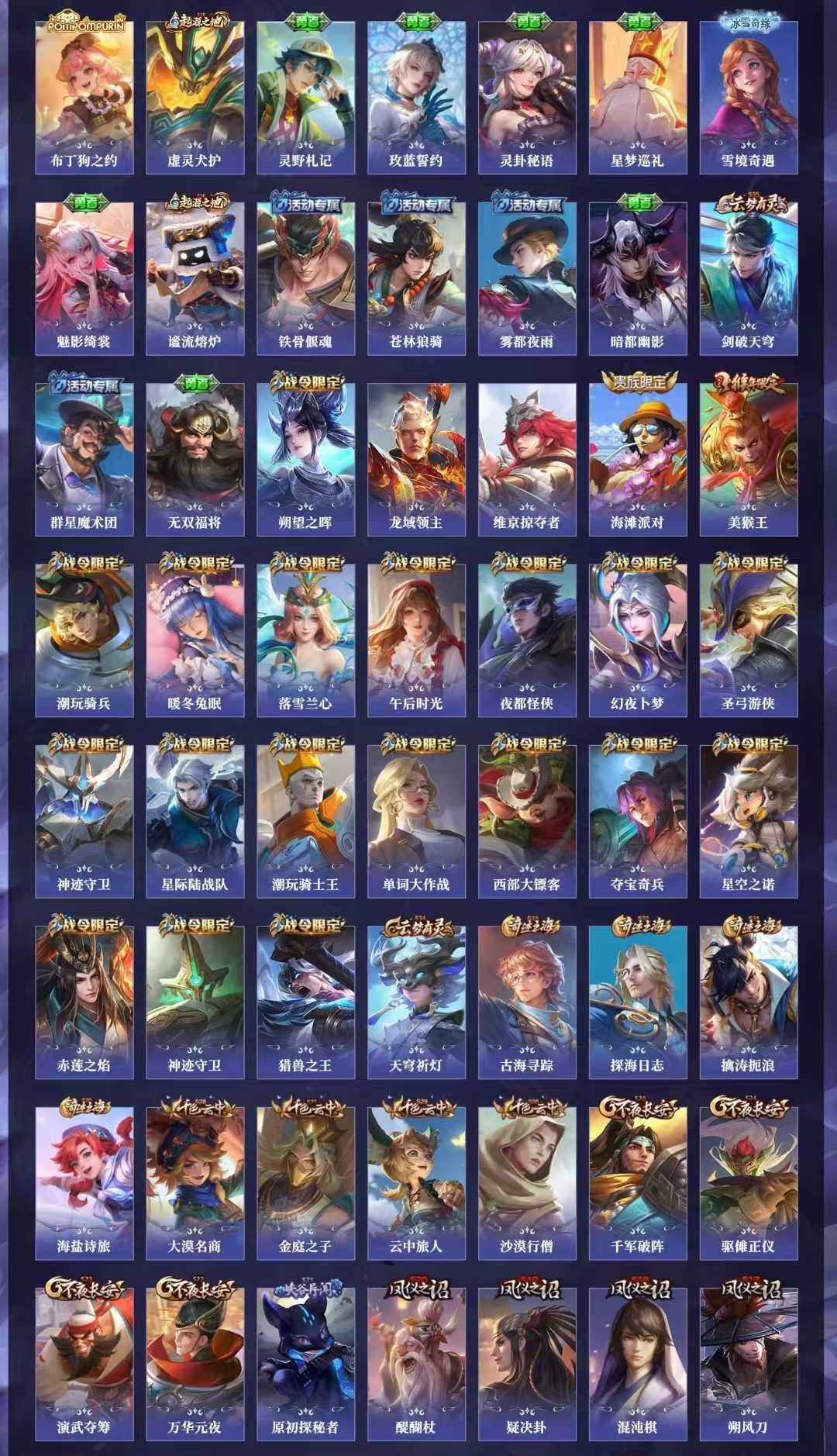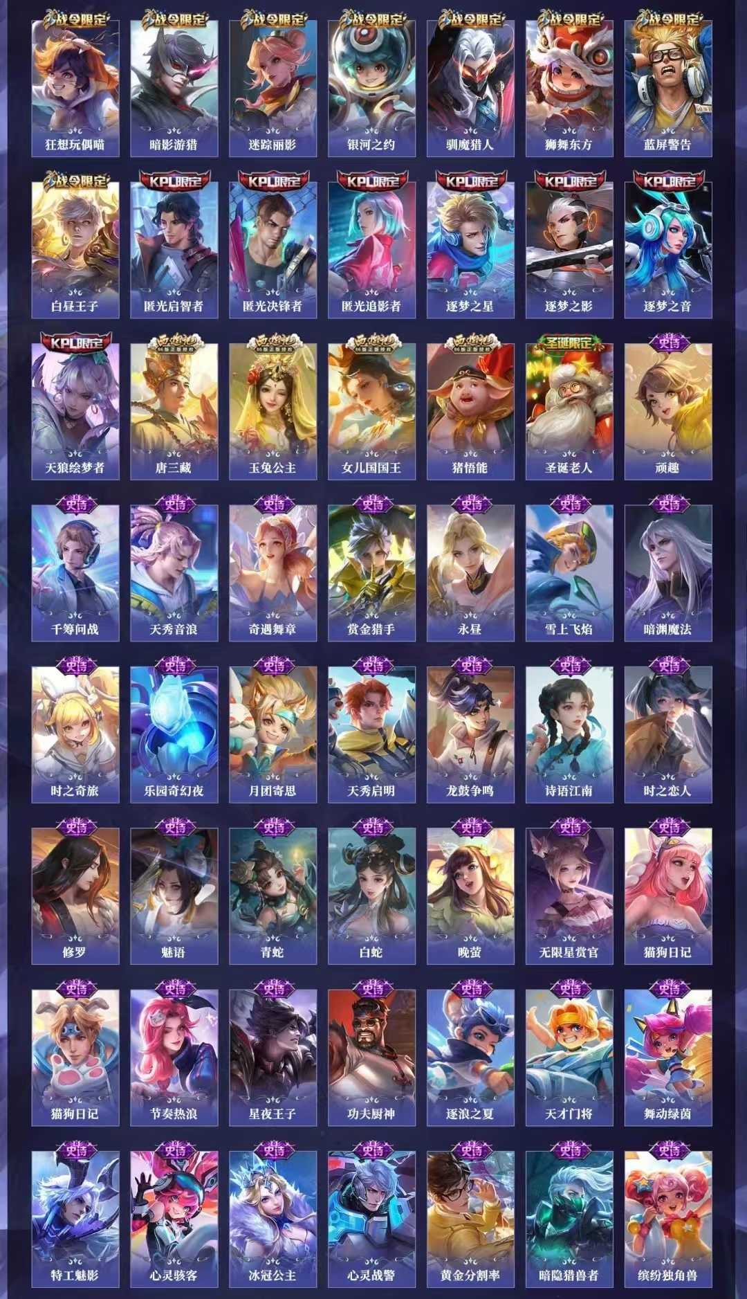 【C217】贵族V10~472皮肤9水晶56传说18金标瑶典藏紫情瑶,时之映像,无限倾心,炽翼辉光,前尘镜,无双飞将,启示之音,九霄神辉,星域神启,倪克斯神谕,星穹之声,女娲补天,虎年鲁班,李逍遥,祈雪灵祝,天魔缭乱,鸣剑曳影,无限飓风号,大秦宣太后,天鹅之梦,杀手不太冷【全山海情兔年,全寅虎,全五虎上将,全牛年,全五兽】