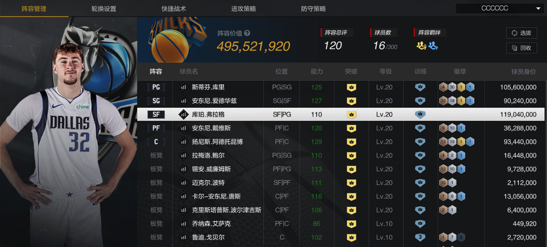 - 角色:36.4 库里现役阵容