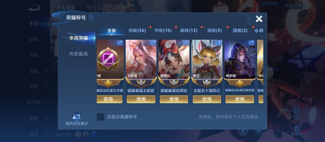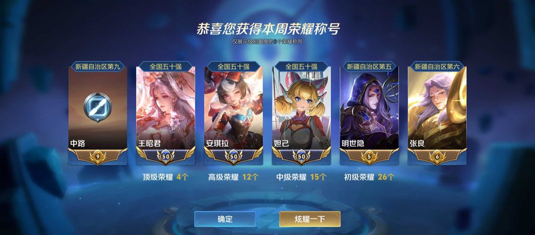 - 段位:荣耀王者