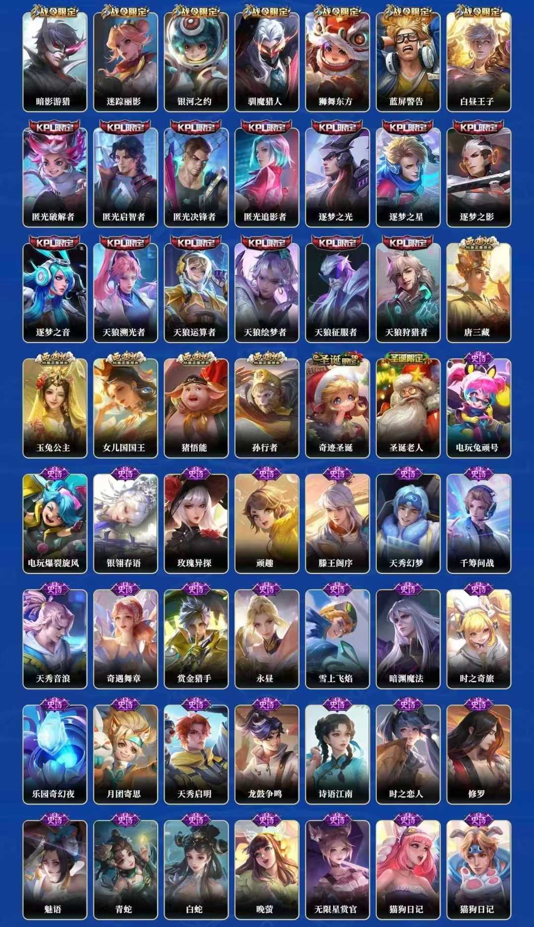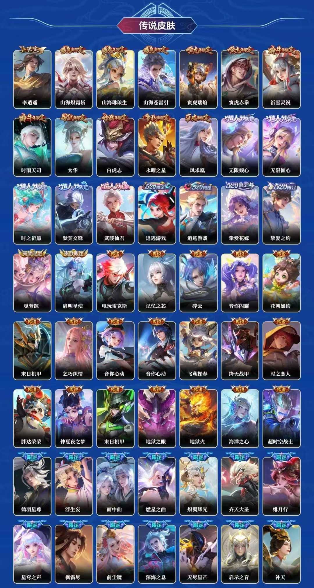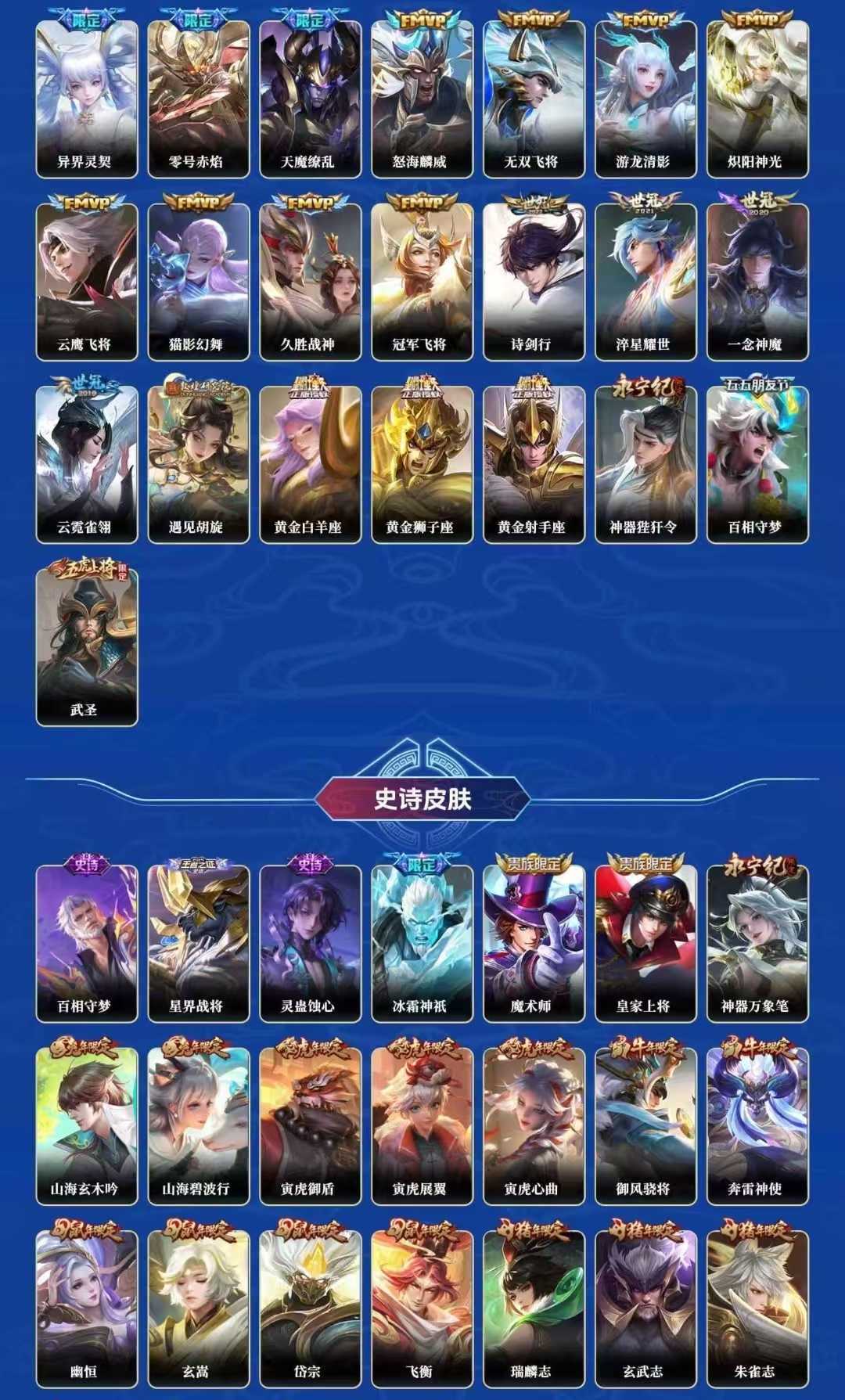 【C302】贵族V10~537皮肤16水晶78传说2无双青丘九尾明辉仪,情瑶,弑枪猎影,幻阙歌,冰霜神祇,鹤羽星尊,炽翼辉光,李逍遥,电玩雷克斯,无双飞将,九霄神辉,银白咏叹调,赤影疾锋,星域神启,倪克斯神谕,全息碎影,鸣剑曳影,活力突击,无限飓风号,大秦宣太后,星空梦想,天鹅之梦,杀手不太冷【全山海情兔年,全寅虎,全五虎上将,全牛年,全五兽】