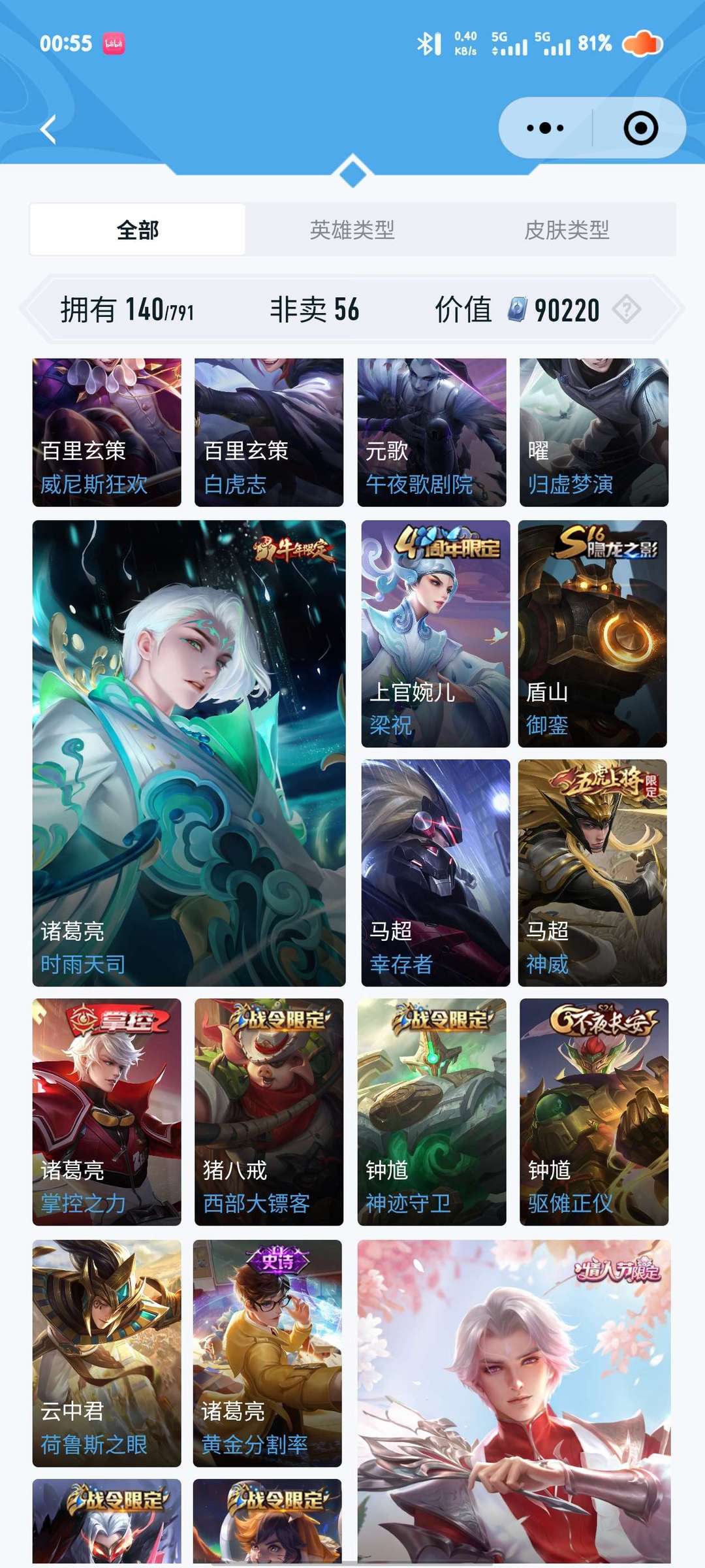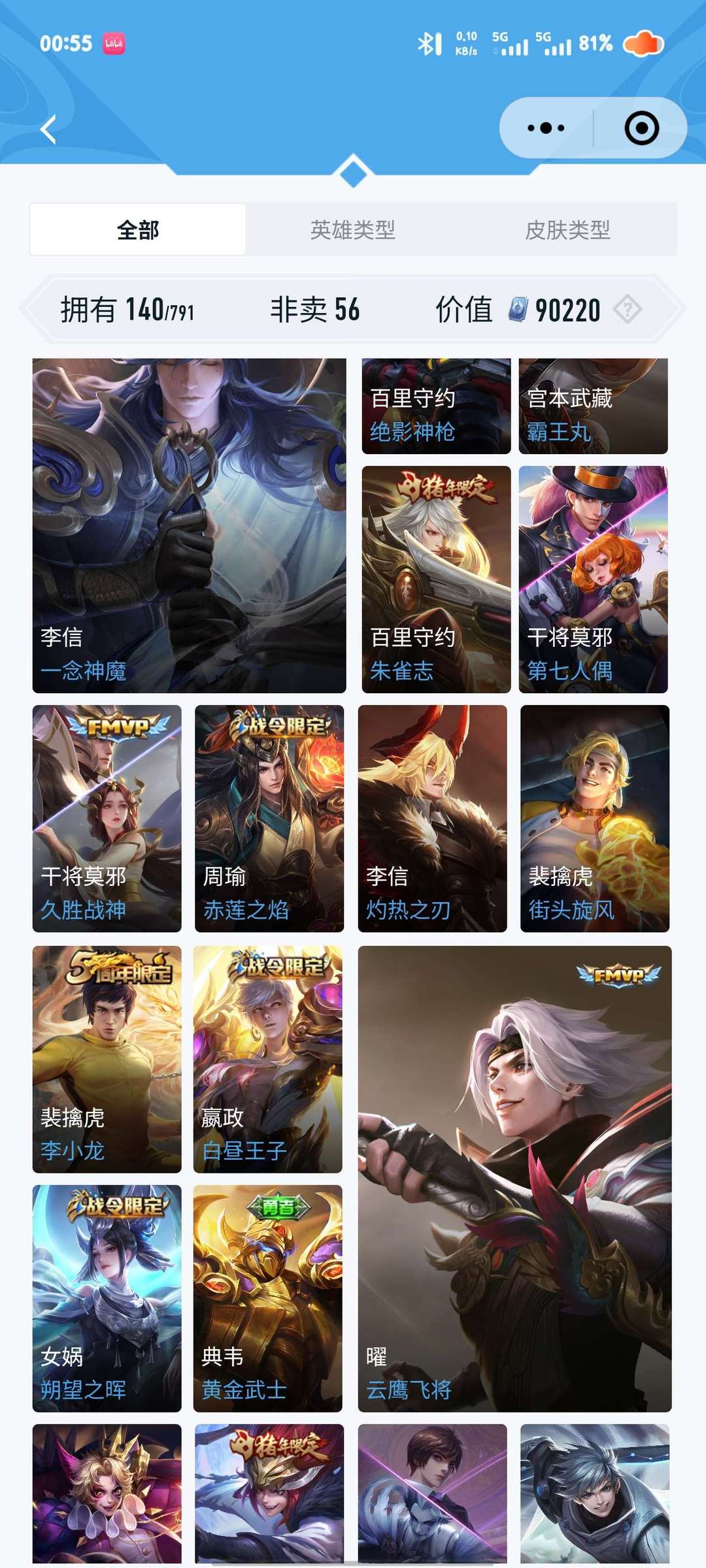 >>>>>>毁号,涉及毁坏虚拟财产罪及计算机安全罪,请文明游戏素质游戏,让我们共建美好租号平台>>>>>> 本游戏账号: ,英雄多,皮肤多。FMVP皮肤3个,尽情享受FMVP皮肤带来的主角光环, 私人所属英雄皮肤有:诸葛亮 时雨天司||诸葛亮 武陵仙君||张良 黄金白羊座||司空震 愿照·山河定||女娲 愿照·千秋盛||关羽 武圣||李信 一念神魔貂蝉 猫影幻舞||干将莫邪 久胜战神||曜 云鹰飞将,等等 注意事项: A.游戏过程中请不要恶意挂机或者不文明发言;B.恶意挂机、顶号等行为将被拉黑无法再次下单;C.进入游戏后中途请勿退出登陆,否则无法再次上号;D.部分账号由于异地登录可能会出现密码错误提示,通常再尝试5-6次后可上号。 |||||||||>喜欢本账号请点 ☆收藏☆ 方便下次租用,谢谢光临惠顾|||||||||