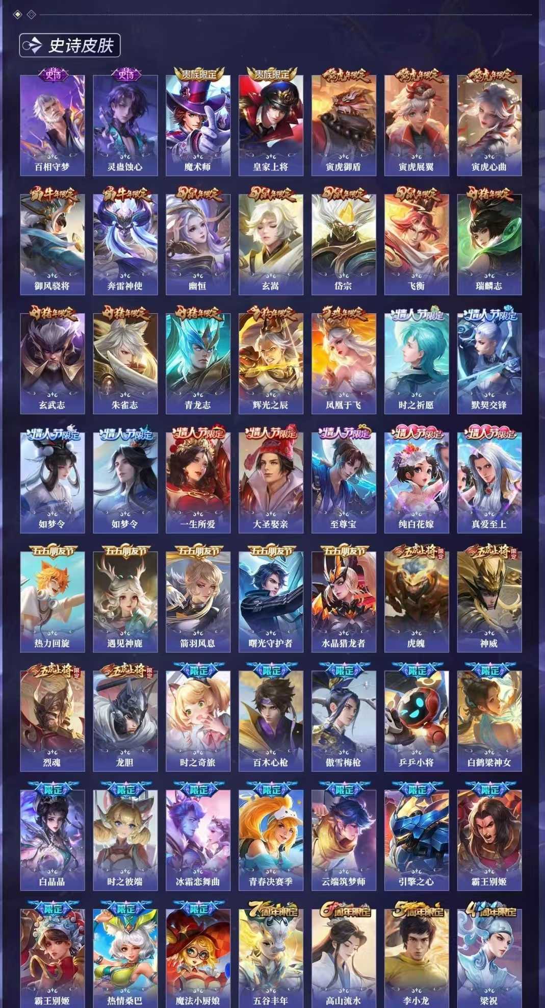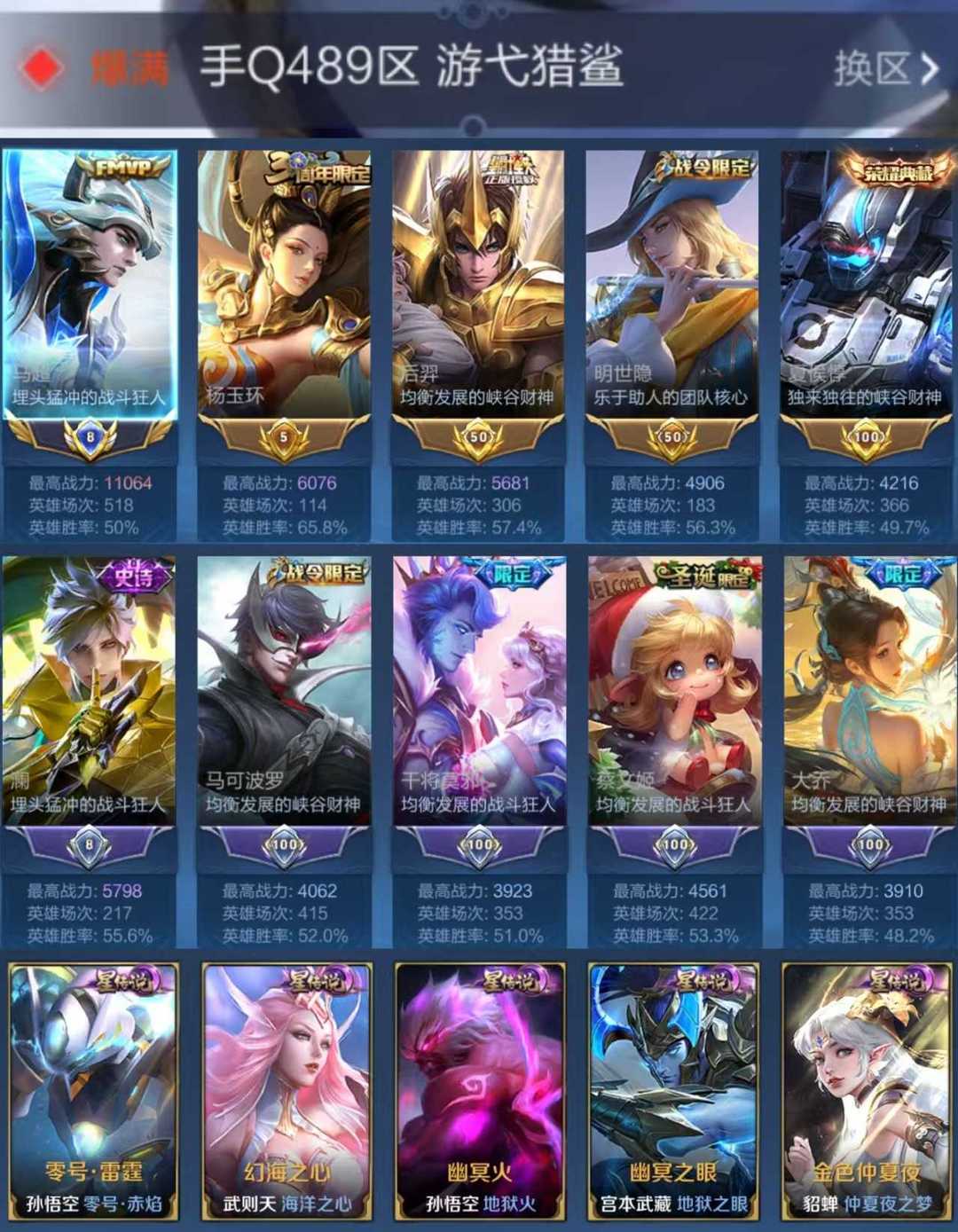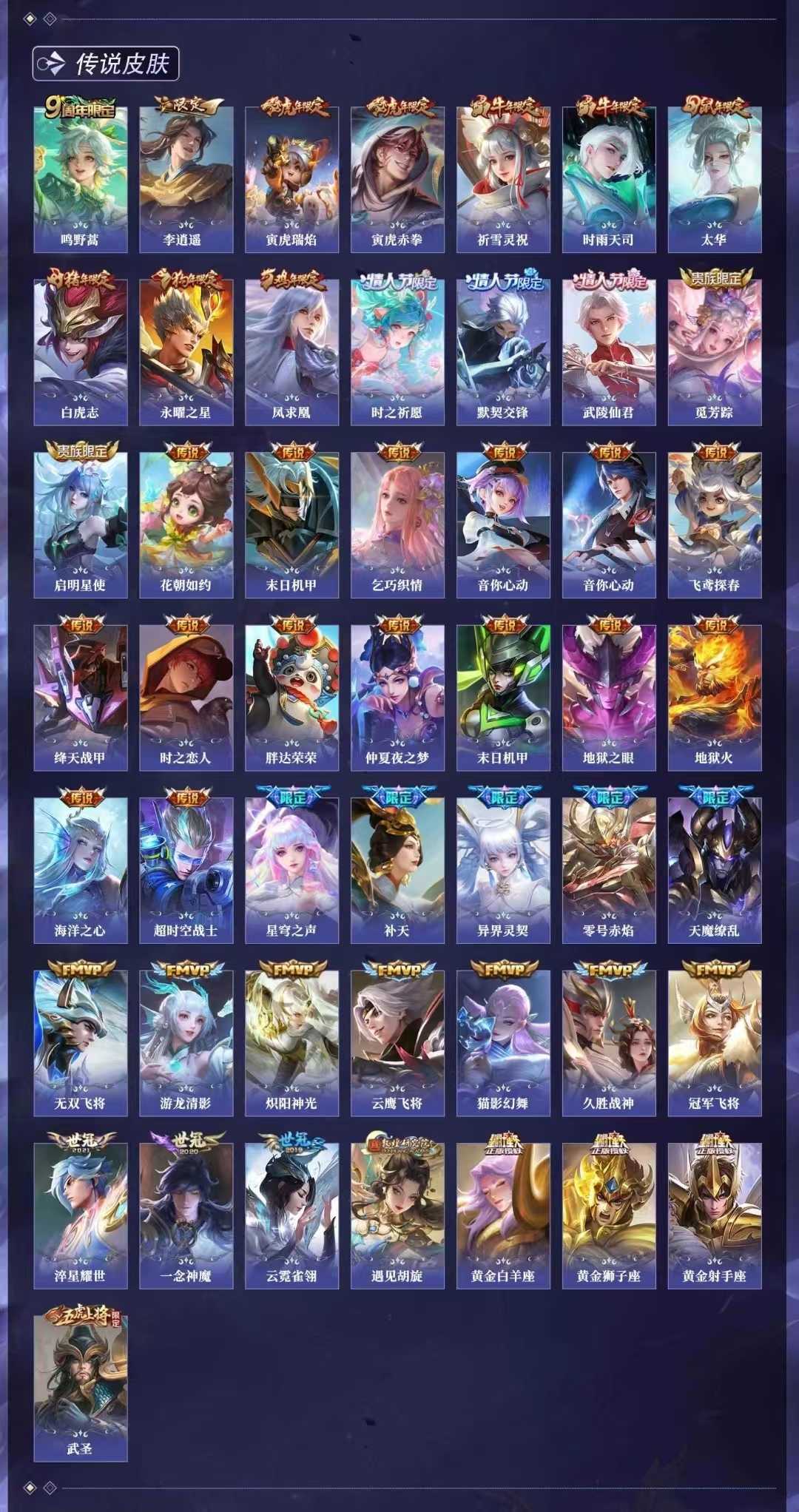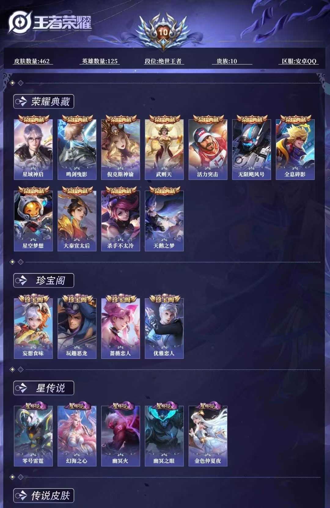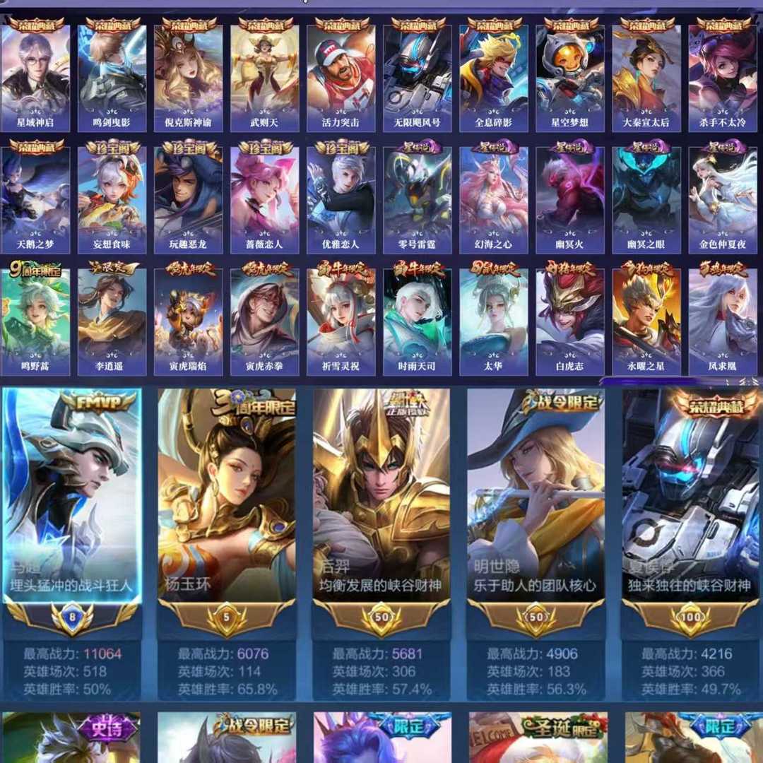 【C318】贵族V10~461皮肤11水晶50传说国服马超情瑶鸣剑曳影,无双飞将,女娲补天,李逍遥,太华,星域神启,倪克斯神谕,活力突击,全息碎影,无限飓风号,星空梦想,大秦宣太后,天鹅之梦【全山海情兔年,全寅虎,全五虎上将,全牛年,全五兽】