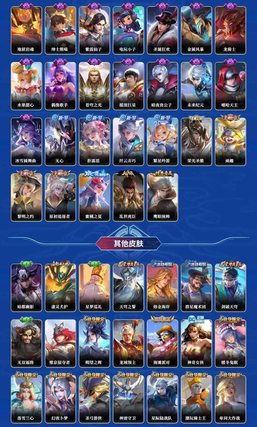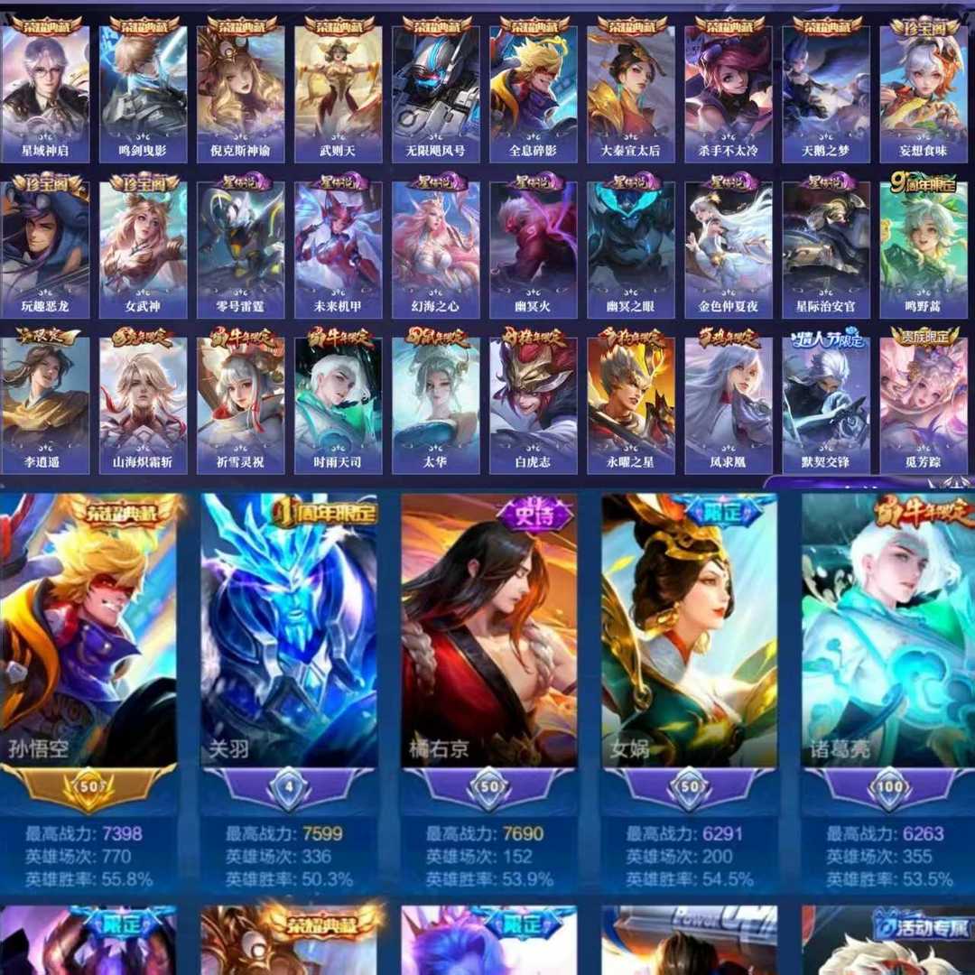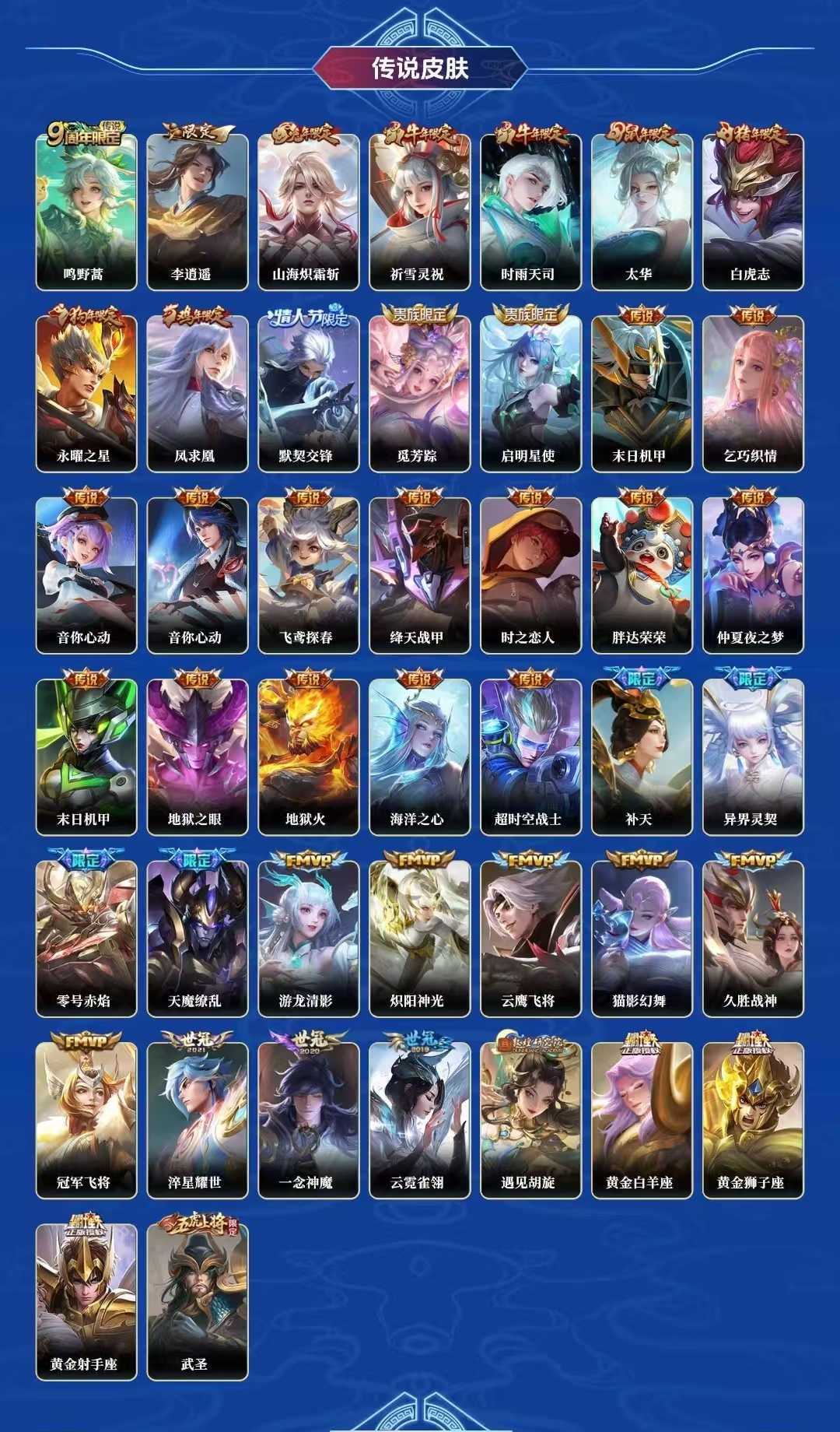 【C41】贵族V10~421皮9典藏44传说星域神启鸣剑曳影,杀手不太冷,倪克斯神谕,大秦宣太后,天鹅之梦,无限飓风号,全息碎影【优质限定皮肤】:山海·炽霜斩,祈雪灵祝,白虎志,武圣,神威,天魔缭乱,凤求凰,至尊宝