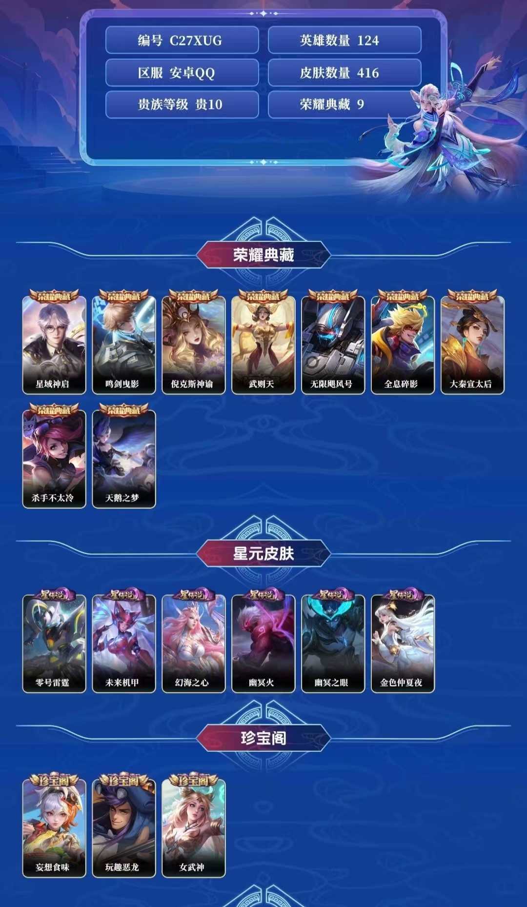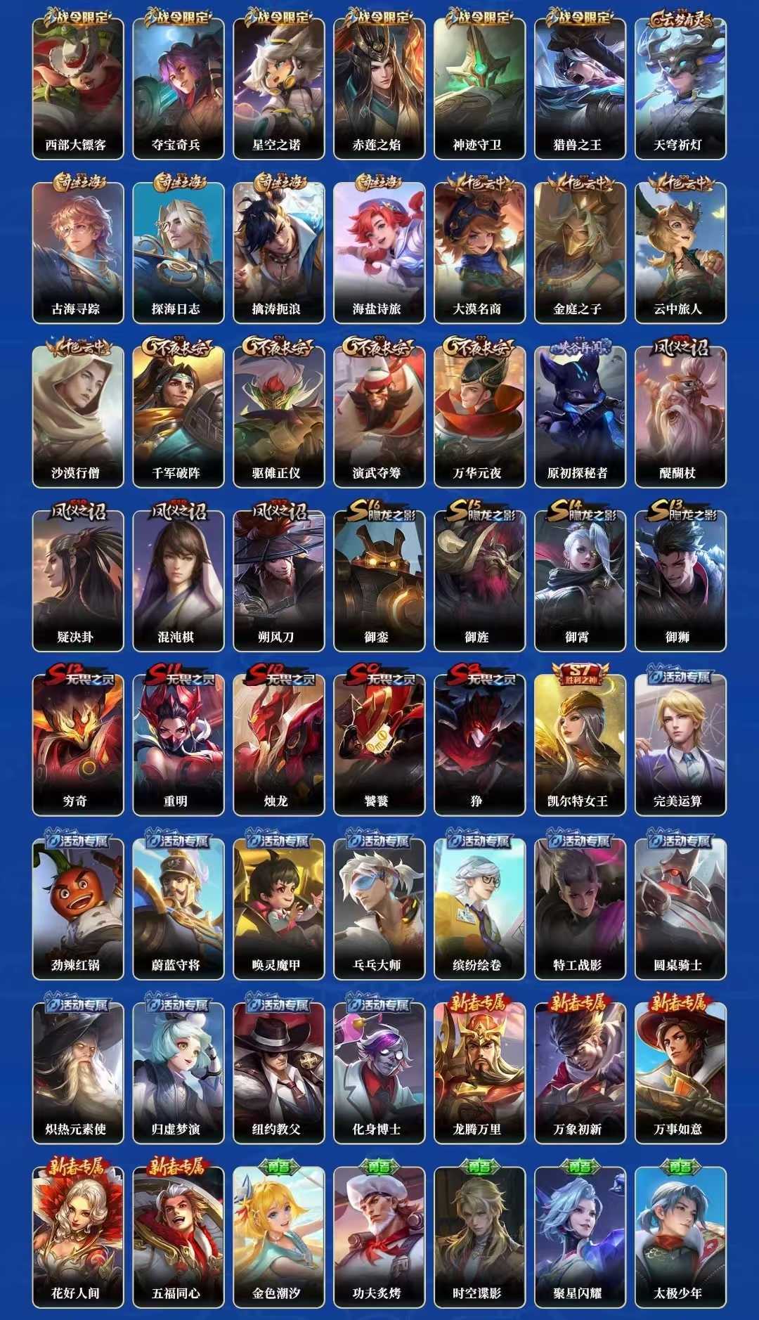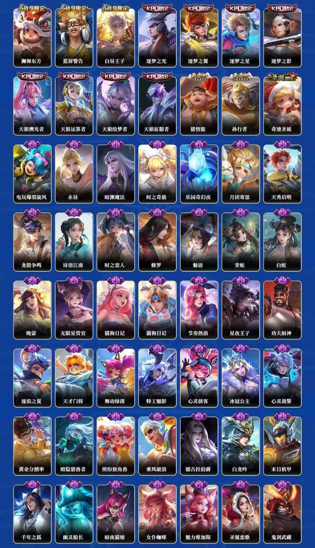 【C41】贵族V10~421皮9典藏44传说星域神启鸣剑曳影,杀手不太冷,倪克斯神谕,大秦宣太后,天鹅之梦,无限飓风号,全息碎影【优质限定皮肤】:山海·炽霜斩,祈雪灵祝,白虎志,武圣,神威,天魔缭乱,凤求凰,至尊宝
