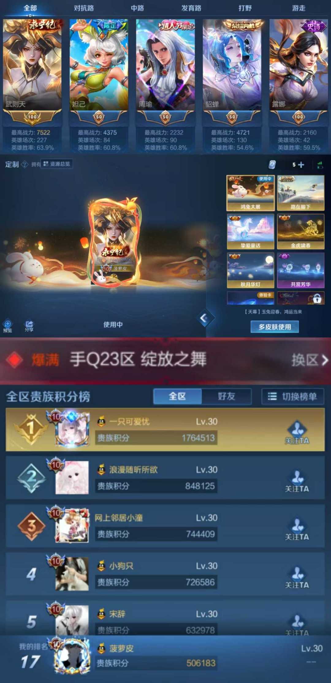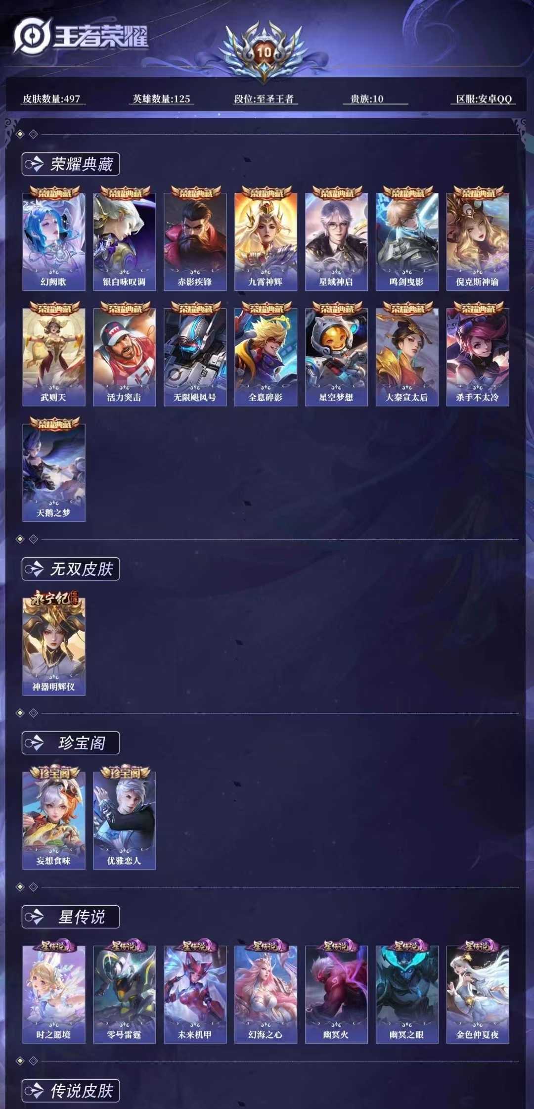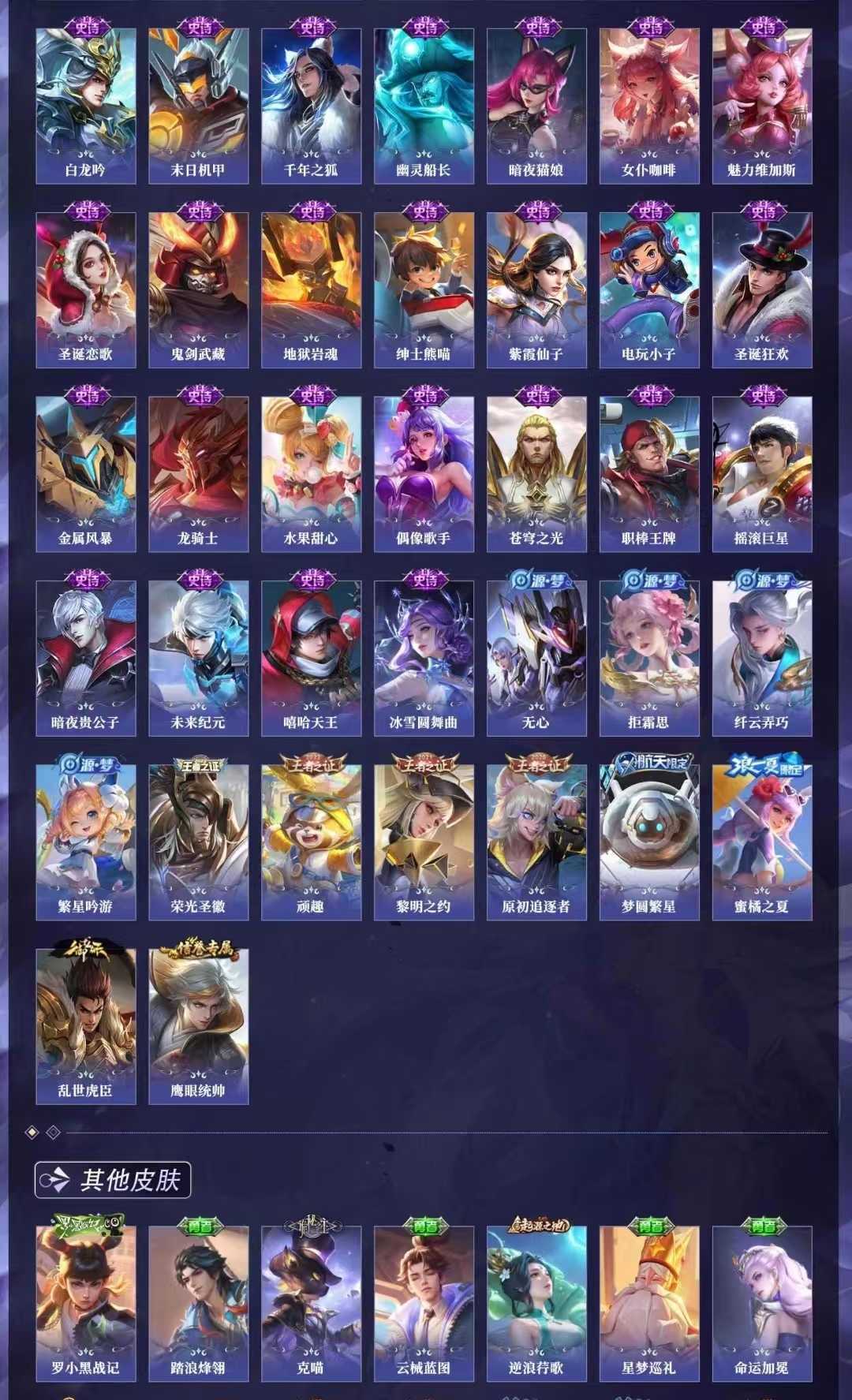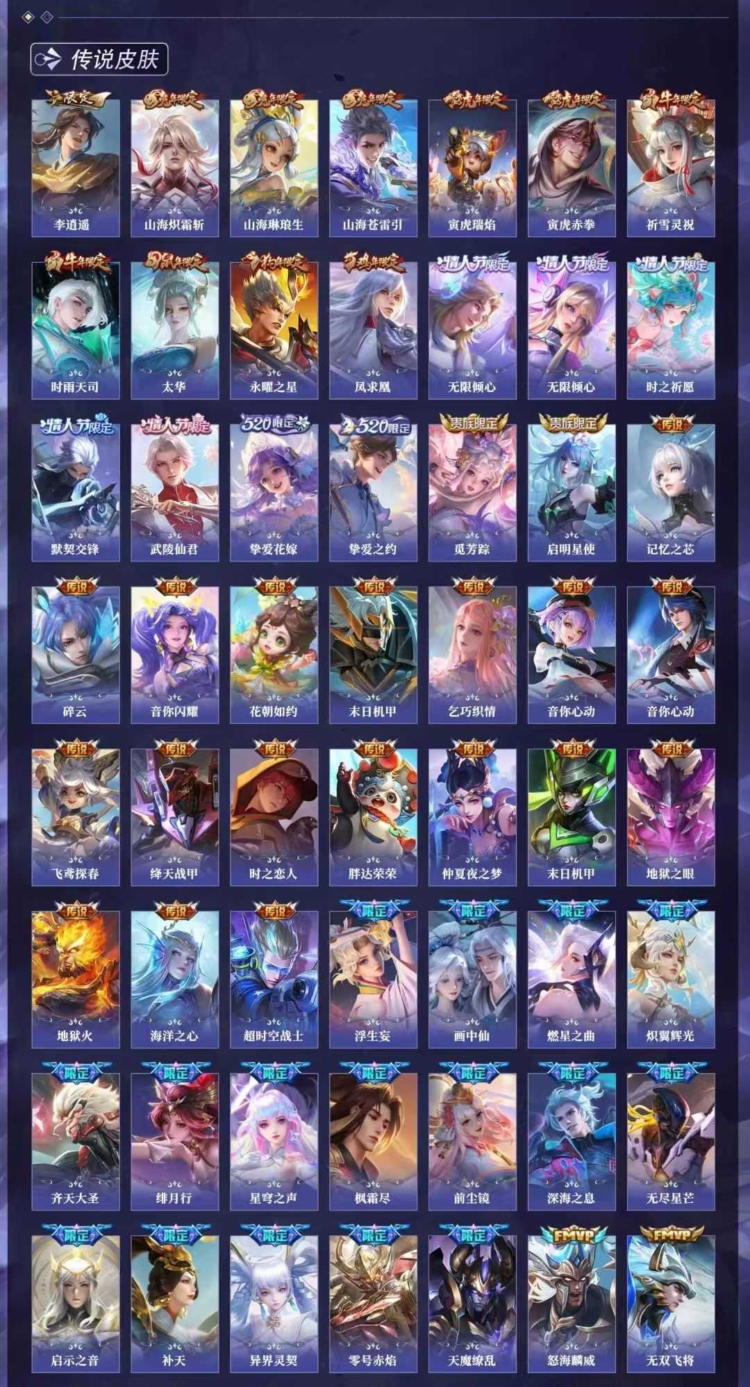 【C92】贵族V10~500皮肤15典藏72传说幻阙歌九霄神辉明辉仪冰霜神祇,银白咏叹调,赤影疾锋,星域神启,倪克斯神谕,全息碎影,鸣剑曳影,活力突击,无限飓风号,大秦宣太后,星空梦想,天鹅之梦,杀手不太冷【全兔年,全虎年,全牛年,全五虎上将,全五岳,全五兽】