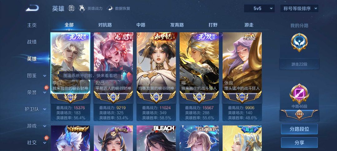 无人敛100%上号 满皮肤 马年限定皮肤 历史五小国标妲己武则天张良 李白 耀