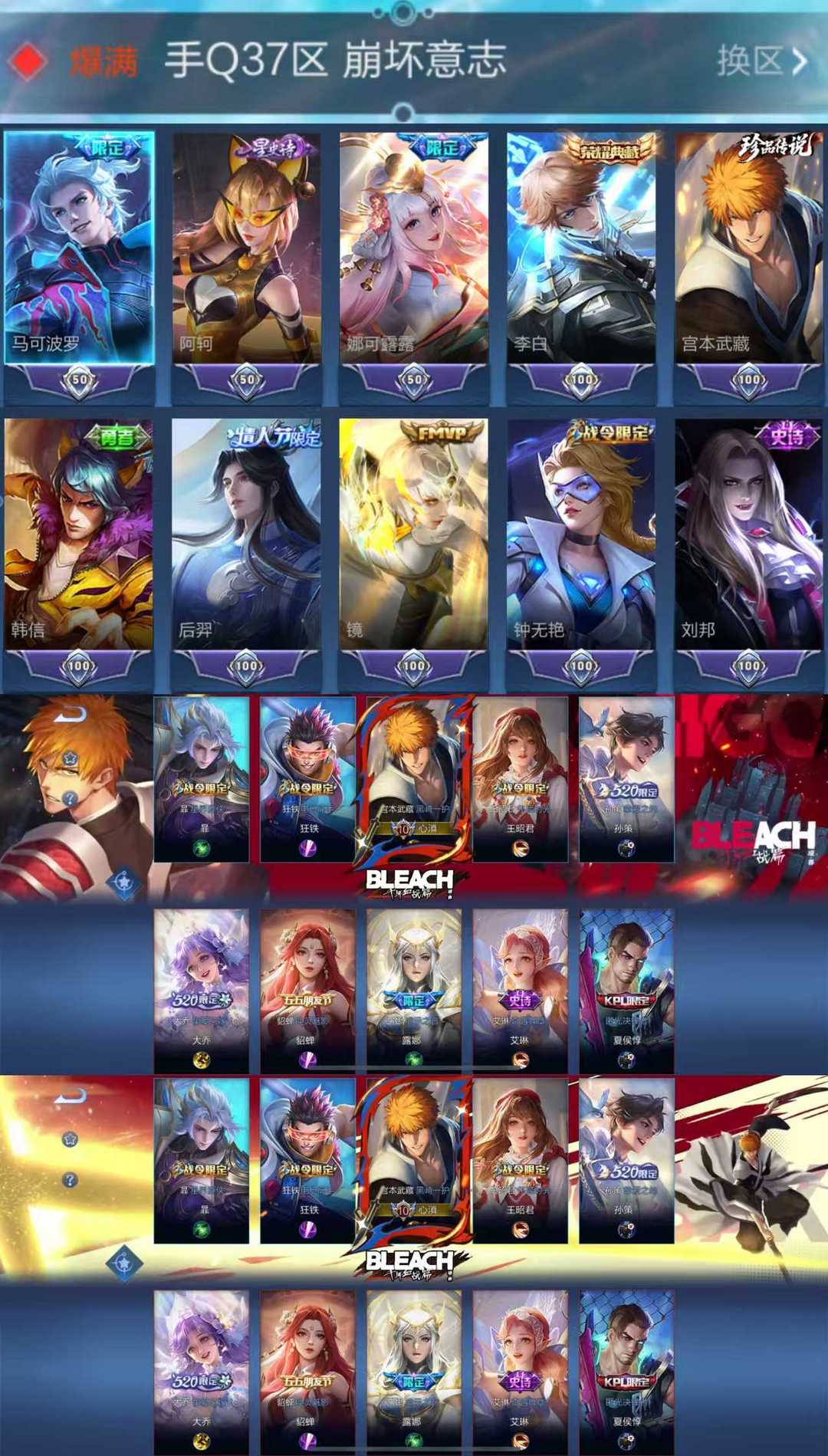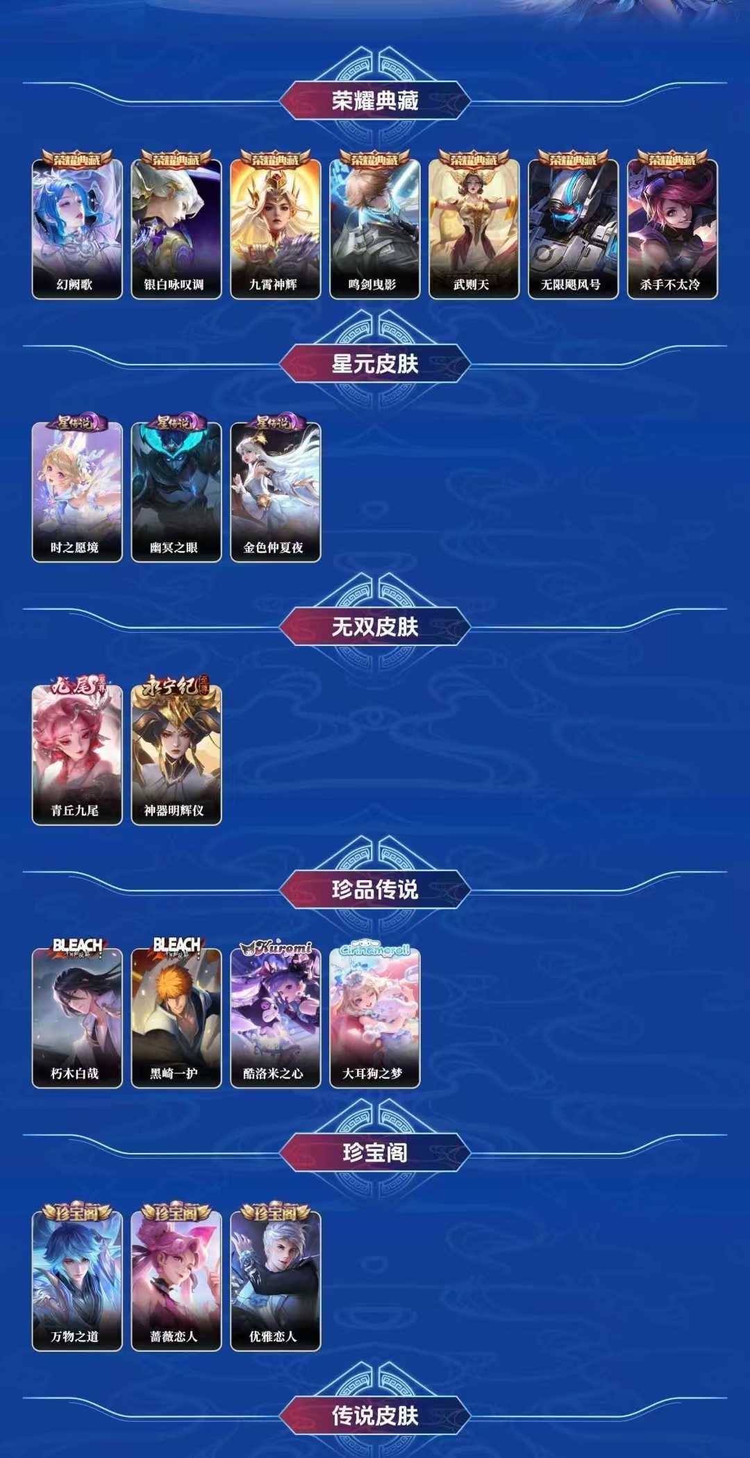 【C356】贵族V10~443皮肤6典藏2无双4珍品46传说黑崎一护朽木白哉,酷洛米之心,大耳狗之梦,青丘九尾,明辉仪,情瑶,幻阙歌,九霄神辉,鸣剑曳影,无限飓风号,杀手不太冷【全山海情兔年,全寅虎,全五虎上将,全牛年,全五兽】