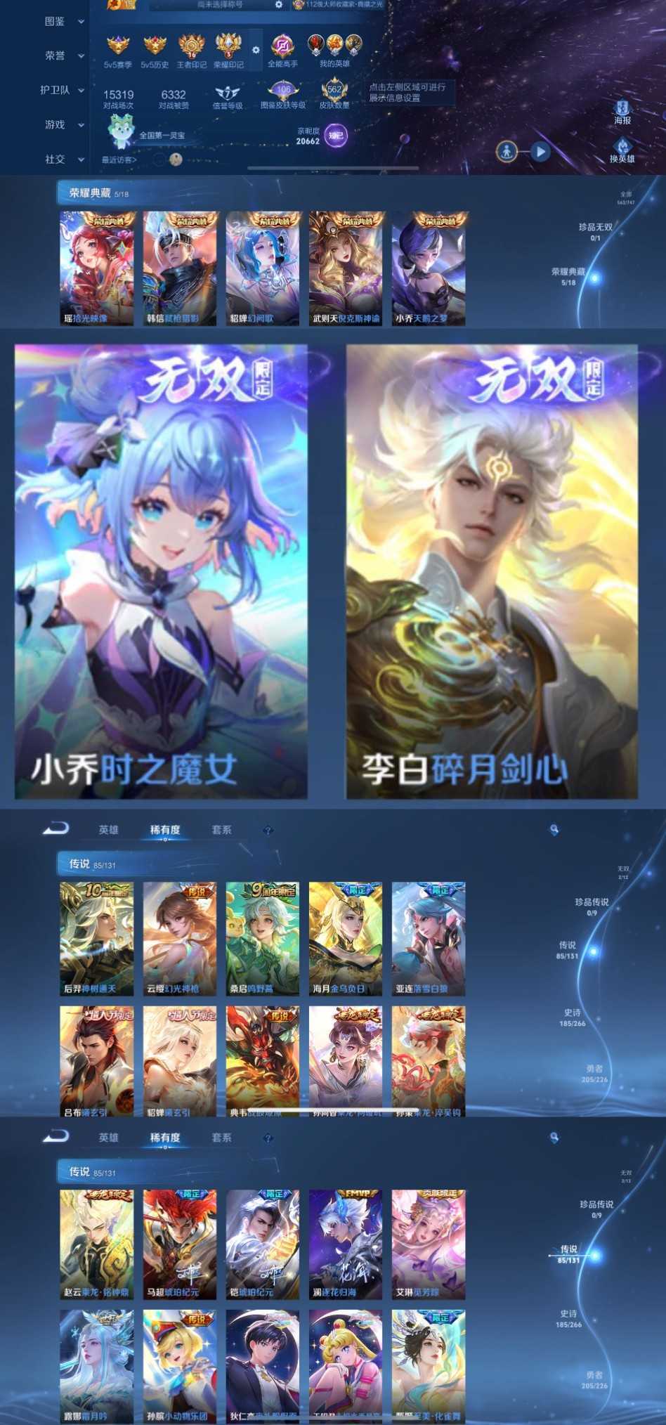 时间到了还登录白玩或者顶号全部改密拉黑处理永不解除,顶号机器会秒禁玩改密,顶号不仅拉黑还没得玩,赚三两块不容易,请理解谢谢。 ❤❤❤❤❤❤❤❤❤❤❤❤❤❤❤❤❤❤ 请勿开挂,挂机,送头,骂人,撤单后游戏等如有违规永久拉黑永不解除。 重置二级密码不要费劲了,号主每天都会上号查看,多行不义必自毙,人在做天在看,多做好事多自律,少做缺德事。 该号英雄128个皮肤562个,典藏6个,无双2个,星传说7个,传说85个,史诗185个,祝你游戏愉快