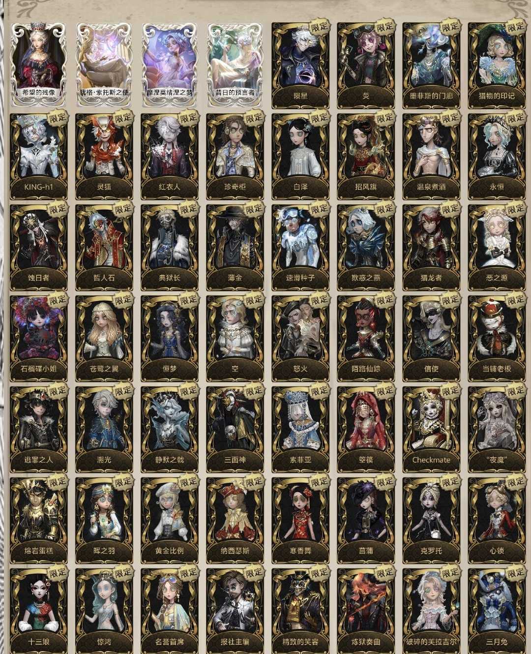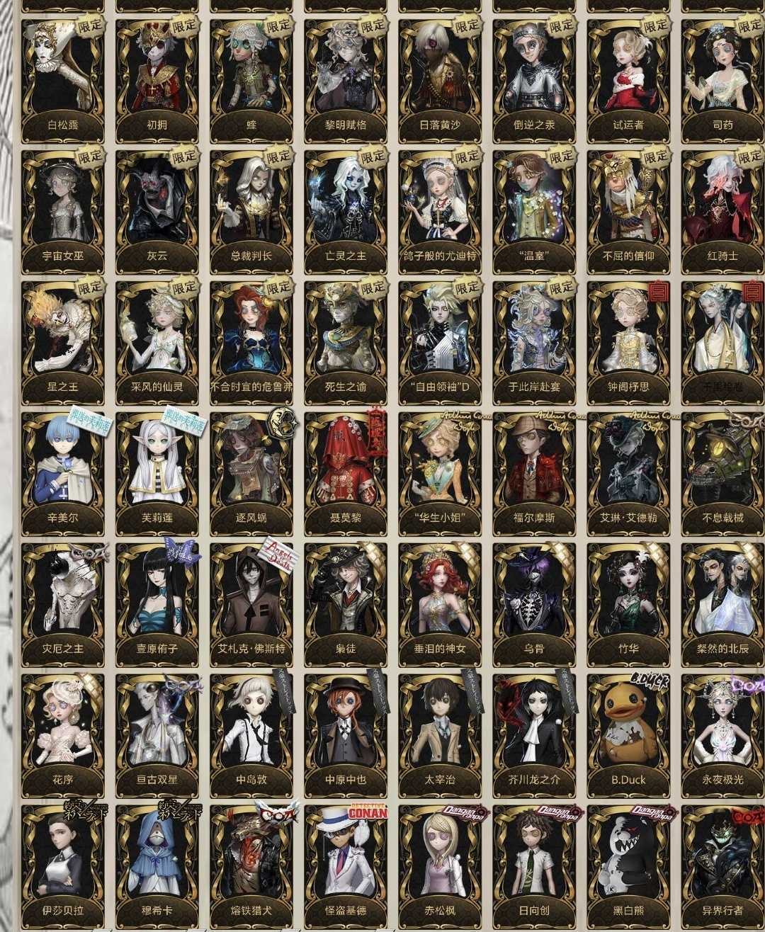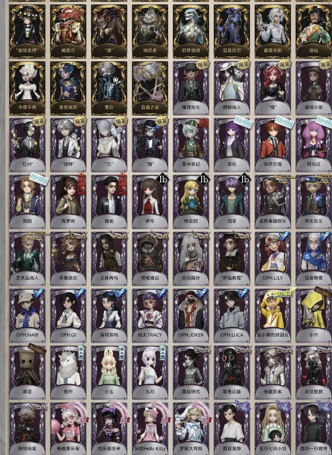 恶意撤单退款秒顶拉黑,租赁的就是图中账号,会不定时上新皮肤,禁止一切不文明租号行为,如发现会立即顶号。 ⭐️亮点皮肤:女王蜂记忆的沉疴,黎明赋格,陨星,于此岸赴宴,joker,crow,希望的残像,犹格.索托斯之使,DM,白,黯,加特,祭司绯,宿伞真理之下东方的麒麟,真相小姐,推理先生,克罗托,十三娘,总裁判长,陌路仙踪,三月兔,当铺老板,初拥,白松露,日落黄沙,炼狱奏曲,蛙,夜魔,checkmate,黄金比例,江户川柯南,工藤新一,伊莎贝拉,赤松枫,kingh1,灵狐,珍奇柜,墨菲斯的门廊,穆希卡,纳西瑟斯,熔岩蛋糕,三面神,静默之戟,怒火,空,恶之源,欺惑之燕,温泉煮酒,典狱长,基德,白泽,红衣人,菖蒲,日向创,鸽子般的尤迪特,荧,逃罪之人,夜行枭,索菲亚,箜篌,速滑种子,晖之羽,心锁,裁决之酒,蚀日者,川上富江,东风摇,试运者,寒香舞,信使,苍鹭之翼,壹原侑子,哲人石,倒逆之汞,猎物的印记,名誉首席,入殓师温室,骑士红骑士,黄衣之主灾厄之主,蜘蛛不息载械,冒险家报社主编,气象学家采风的仙灵,小说家福尔摩斯,弓箭手不合时宜的危鲁弗。 文豪野犬,杀戮天使,约定的梦幻岛,伊藤润二,疯狂的外星人,剪刀手爱德华,四月一日,弹丸论破一二三弹,名侦探柯南,肯德基kfc,B.duck,罗森,Line Friends布朗熊可妮兔,时光代理人,镰田光司,三丽鸥,非人哉以上全满配。女神异闻录一二弹全满配,福尔摩斯全满配,真理之下全齐。66限定时装22联动金,虚妄有祭司和黑白熊的随身物品。 紫皮亮点:宿伞东方的麒麟,摄像师DM,先知白,先知黯,入殓师加特,祭司绯,真相小姐,推理先生,小六,美乐蒂,库洛米,大耳狗,瑞吉儿,程小时,七海千秋,雾切响子,罪木蜜柑,猩红新娘,金,剪刀手爱德华,佐仓双叶,白孔雀,异动指针,杂技演员李天辰,宿伞刘枭,古董商乔苓,囚徒OPH.LUCA。 归宿72w:迷雾山庄,贝克街221B,沉默的宫殿,魅影古堡。 典藏大家具:一念之间,陨落的王座,游戏桌等。精装别墅