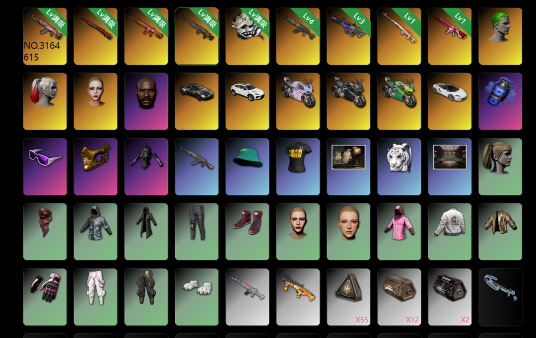 ---此号为平台网吧电竟专用号,家庭用户无法租用---【5满级11神器】双小丑/三杜卡迪/迈凯伦/马丁/兰博⑩霓虹AUG⑩火麒麟⑩孙悟空M24/满级玄武/满级白虎④青龙无重力MP5K/午夜98K/水麒麟/无信号M4/粉梦德拉贡/拉风龙大礼包/彩色烟雾弹/滑雪镜/大金牙/发光套/悲喜套/小战神/黑鬼