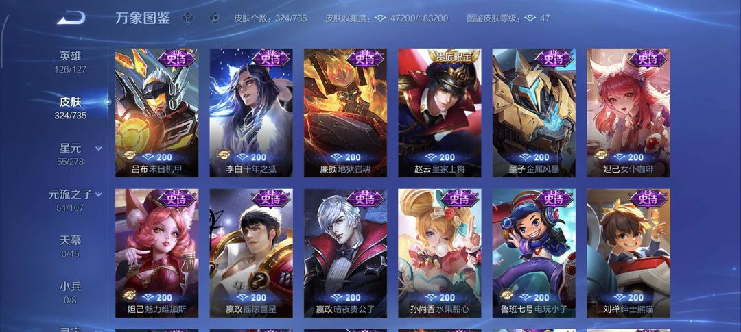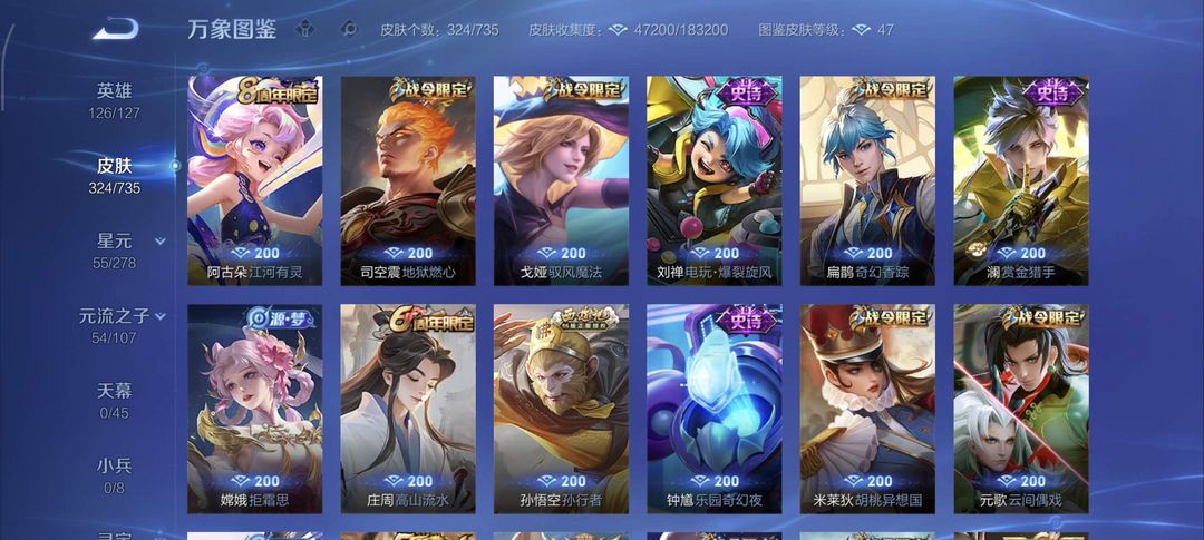 5[{"data_name":"妲己 紫罗兰之誓","dt_id":49,"pf_type":0,"id":9818,"pid":1493,"imgurl":"http://zhwpic.zuhaowan.com/images/game_data_img/2022-03-29/6242a043a31bb.png"},{"data_name":"妲己 灵卜魔法","dt_id":49,"pf_type":0,"id":39105,"pid":1493,"imgurl":"http://zhwpic.zuhaowan.com/images/game_data_img/2024-01-02/6593da5e6fcf1.jpg"},{"data_name":"妲己 魅力维加斯","dt_id":49,"pf_type":4,"id":1670,"pid":1493,"imgurl":"http://zhwpic.zuhaowan.com/images/game_data_img/2018-03-27/5ab9a778d7a12.png"},{"data_name":"妲己 女仆咖啡","dt_id":49,"pf_type":4,"id":1672,"pid":1493,"imgurl":"http://zhwpic.zuhaowan.com/images/game_data_img/2018-03-27/5ab9a789e98ad.png"},{"data_name":"妲己 少女阿狸","dt_id":49,"pf_type":0,"id":1674,"pid":1493,"imgurl":"http://zhwpic.zuhaowan.com/images/game_data_img/2018-03-27/5ab9a79f72c9a.png"}] - 孙悟空