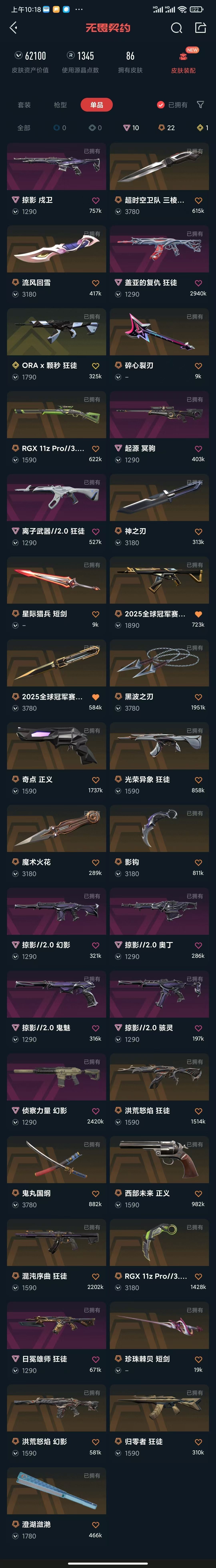 - 皮肤资产价值:62100
