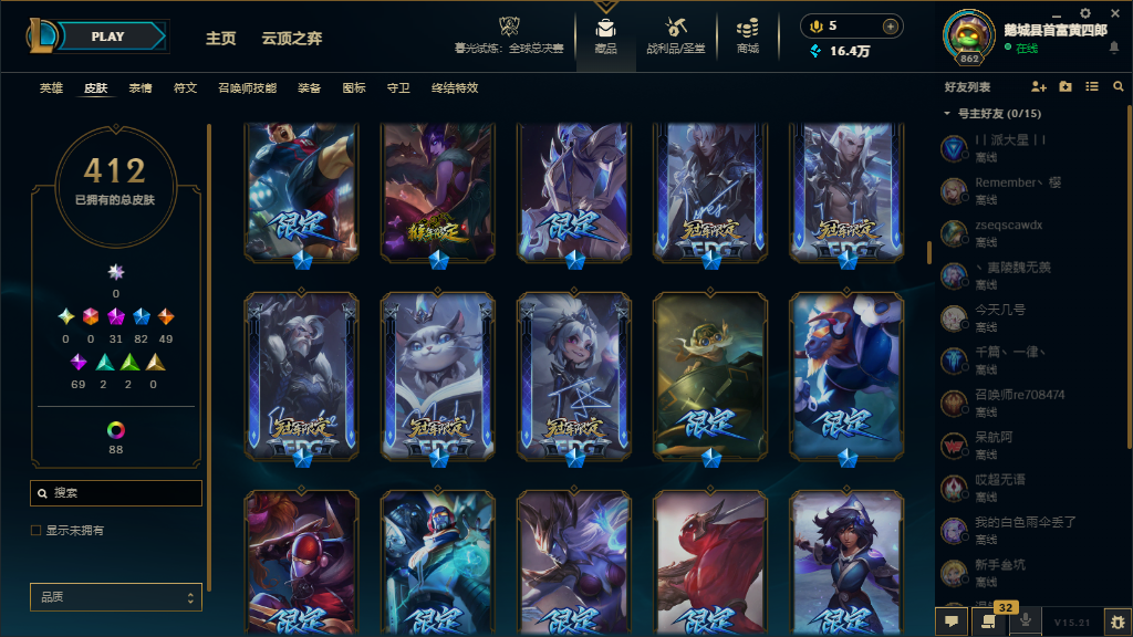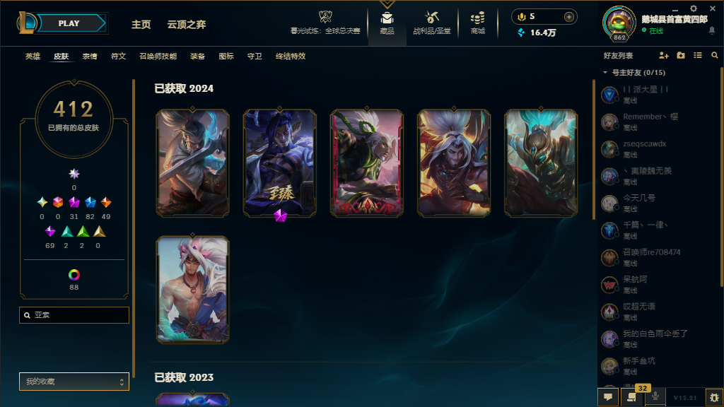 各位租客老爷租前请看一下! 当您遇到 wegame 提示密码错误时,请多试几次不用马上撤这是上号器异地登录的原因不是密码错误,给您带来麻烦请谅解。 ※在运行游戏时请把其他软件全部关闭,避免被检测到第三方登录,禁止挂机和逃跑,发现直接申诉。请大家认真对待,避免造成不必要的麻烦,谢谢合作※ 全英雄,敞开玩 热门皮肤:亚索14P(预知之眼,双至臻,黑夜使者等) , 2024龙年限定皮肤全套,至高天至臻,至臻烈焰美人vn,灵魂莲华 至臻易,至臻星环灵风迦娜,神王诺手+盖伦,11周年Y03-权天使卡蜜尔,至臻星守妮蔻,星之守护者阿卡丽炫彩全套,五个海克斯,六个年限(王国机甲德莱文,神龙烈焰,猴年限定),15个至臻(kda寡妇,星之守护者辛德拉,海之歌,灵能特工EZ,神龙尊者瑟提),EDG全套签名皮肤。