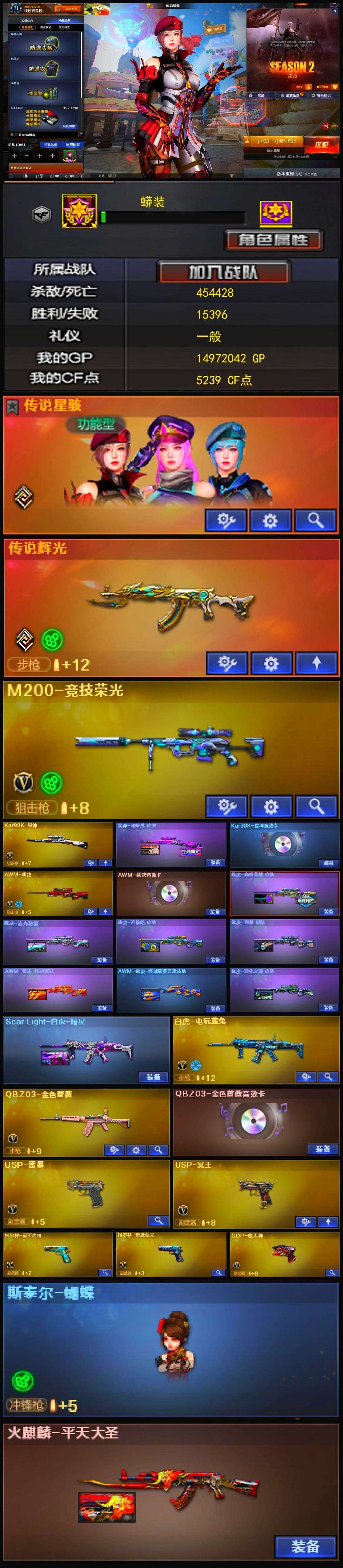 传说星骇、玄豹4房。星神三件套,裁决七皮三件套,QBZ03金色蔷薇音效卡+usp冥王,5把精品副手