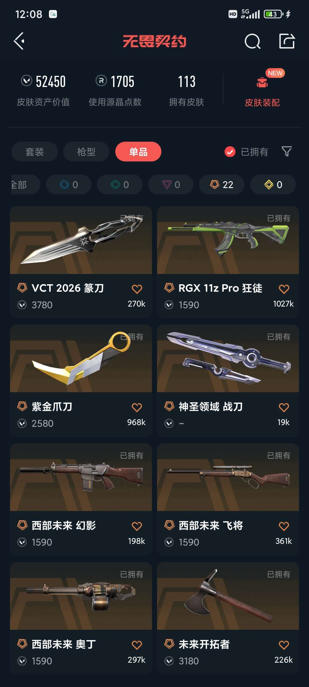 - 皮肤资产价值:52450