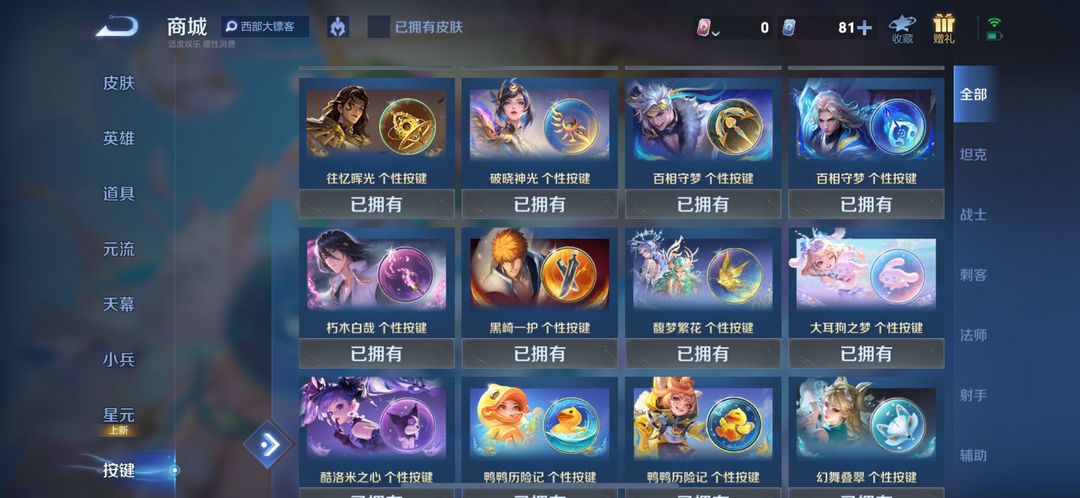 744个皮肤 满按键 可打排位打巅赛!不用补