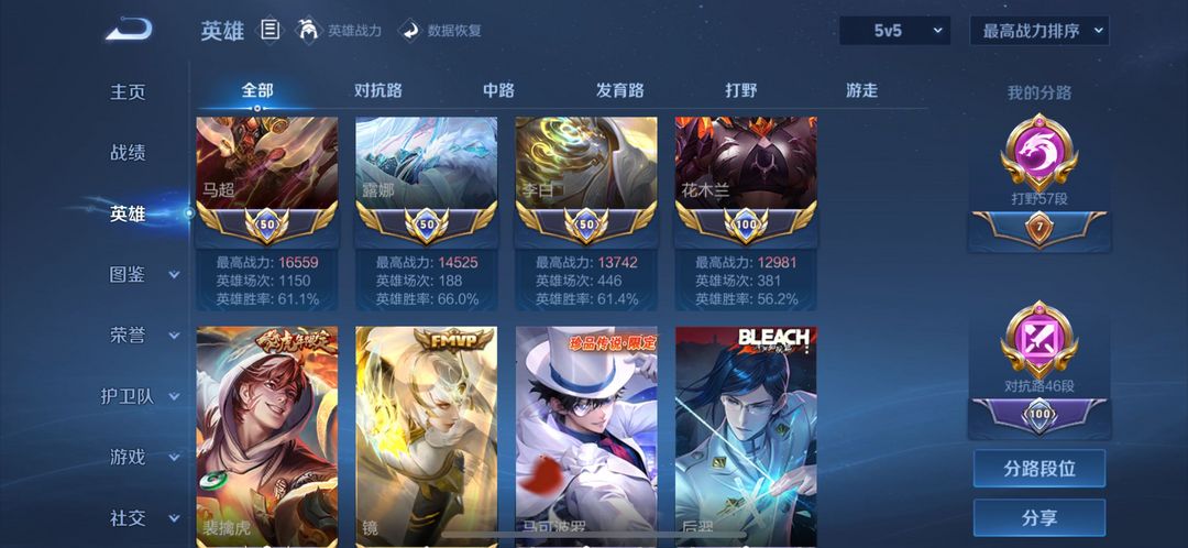 禁止利用账号进行开挂、使用辅助违规软件诈骗等违规操作。 【荣耀典藏】:花木兰九霄神辉,伽罗最初的交响 【无双皮肤】:李白碎月剑心,韩信群星魔术团,公孙离离恨烟,曜器灵螭龙剑 【珍品传说】:马可波罗怪盗基德,鲁班七号江户川柯南,嫦娥器灵落星盏,瑶大耳狗之梦,安琪拉酷洛米之心 【传说皮肤】:西施续相思,杨玉环星之鸣奏,司空震愿照山河定,女娲愿照千秋盛,妲己愿照众生和,澜愿照九州拓,蔡文姬愿照福禄聚,虞姬愿照岁时盈,云缨幻光神枪,裴擒虎祥瑞亨通,桑启鸣野蒿,亚连落雪白狼,吕布曦玄引,孙尚香乘龙问璇玑,孙策乘龙淬吴钩,赵云乘龙铭钟鼎,马超琥珀纪元,铠琥珀纪元,露娜霜月吟,狄仁杰夜礼服假面,宫本武藏惊梅引,云缨鹤归松栖,夏洛特浮生妄,花木兰燃星之曲,项羽无限倾心,小乔山海琳琅生,曜山海苍雷引,李信山海炽霜斩,吕布怒海麟威,不知火舞绯月行,百里守约碎云,娜可露露前尘镜,马可波罗深海之息,马超无双飞将,裴擒虎寅虎赤拳,鲁班七号寅虎瑞焰,兰陵王默契交锋,公孙离祈雪灵祝,诸葛亮