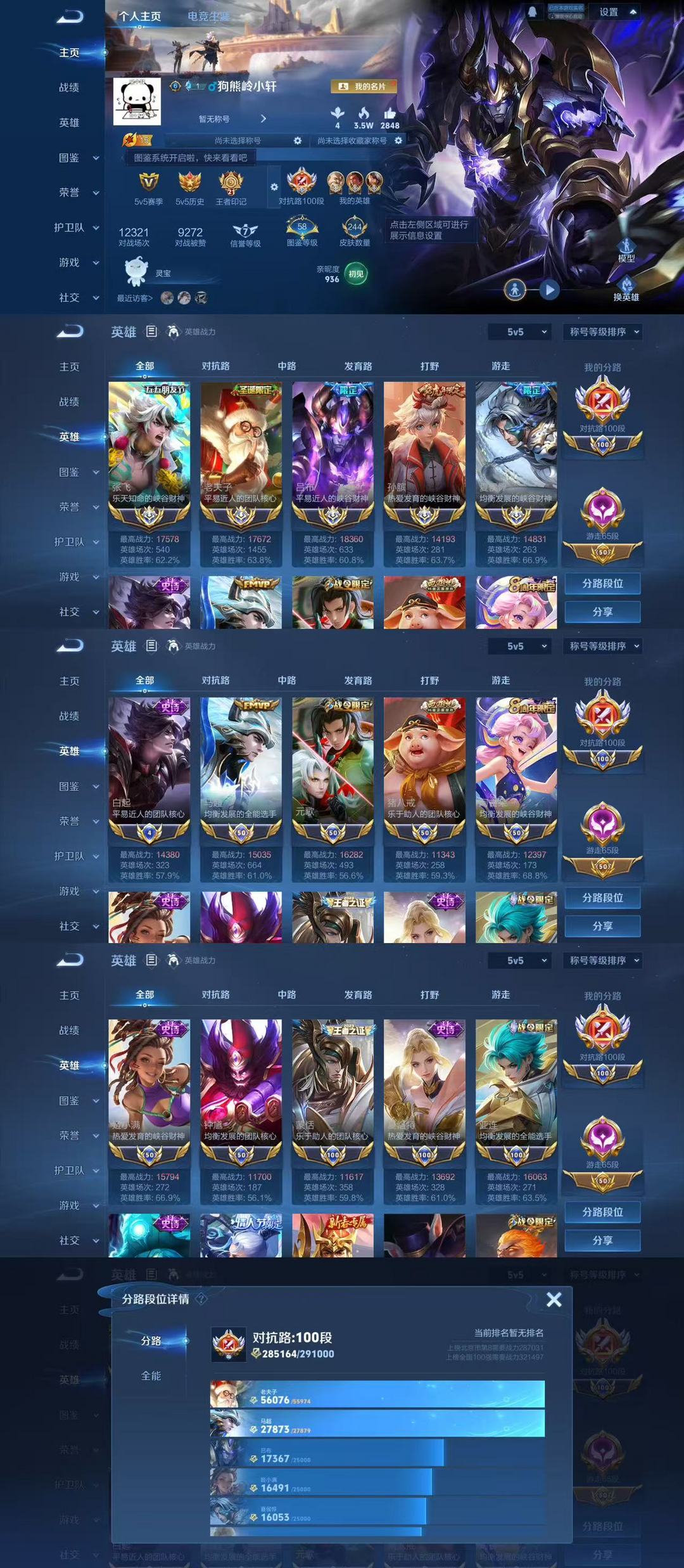 百段对抗路100段 小魔方 大国标张飞1.7w 大国标老夫子1.7w 大国标吕布1.8w 大国标孙膑1.4w 大国标夏侯惇1.4w 数字国4白起1.4w 小国标马超1.5w小国标元歌1.6w 小国标猪八戒1.1w 小国标阿古朵1.2w 小国标姬小满1.5w 小国标钟馗1.1w 小国标蒙恬1.1w 小国标夏洛特1.3w 小国标亚连1.6w 实名: 可修改 贵族等级: V4 英雄数: 126 皮肤数: 244 荣耀水晶: 无限飓风号 传说皮: 冠军飞将,末日机甲-孙尚香,李逍遥,末日机甲-孙策,挚爱之约,挚爱花嫁,无双飞将,百相守梦(张飞) 限定皮: 李小龙,白鹤梁神女,天魔缭乱,神威,默契交锋-花木兰,高山流水,圣诞老人,猪悟能,寅虎·展翼,时之祈愿-云中君,时之祈愿-瑶,五谷丰年,怒海麟威,夏侯惇霜北刀,逐霄战戟