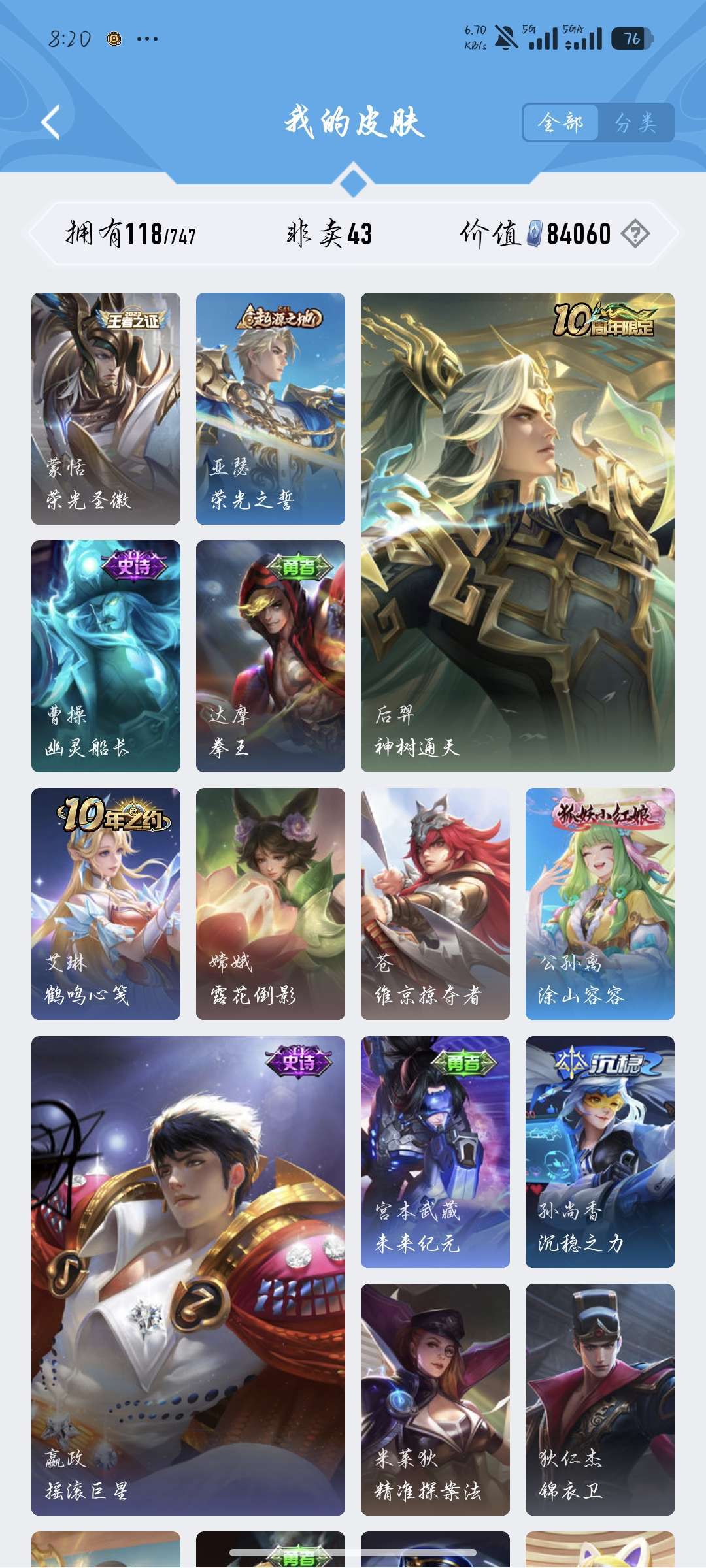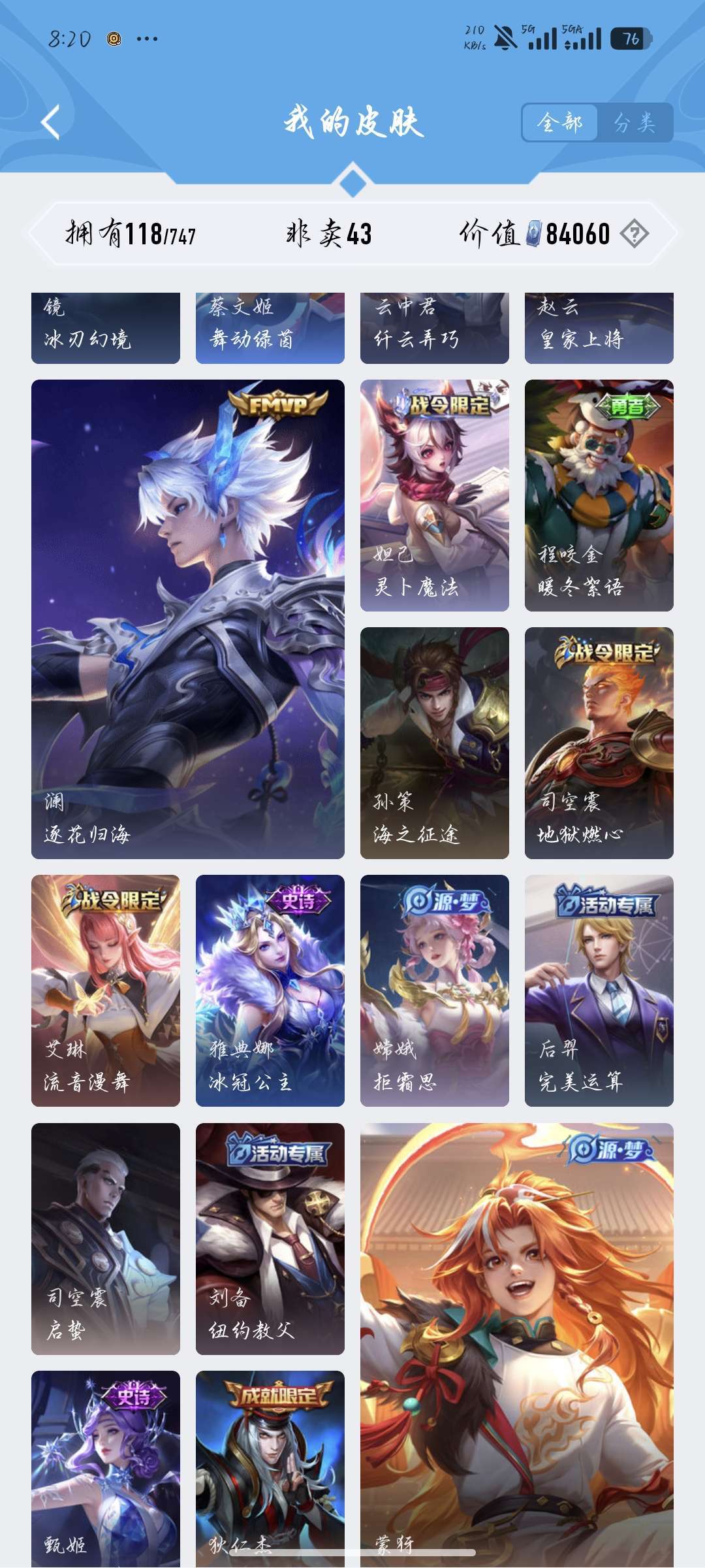 英雄150加 皮肤110加 优质皮肤多,可以自己看图
