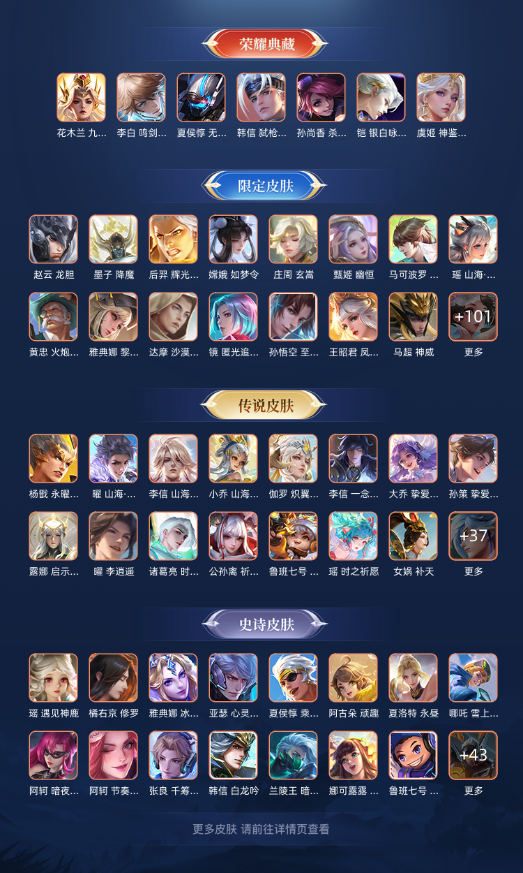 毁号,涉及毁坏虚拟财产罪及计算机安全罪,请文明游戏素质游戏,让我们共建美好租号平台 本游戏账号: 英雄多皮肤多。典藏皮肤6个感受典藏皮肤带来的优质体验快感FMVP皮肤10个尽情享受FMVP皮肤带来的主角光环 私人所属英雄皮肤有:孙尚香 杀手不太冷李白 鸣剑·曳影虞姬 神鉴启示录花木兰 九霄神辉夏侯惇 无限飓风号铠 银白咏叹调杨戬 永曜之星周瑜 音你心动梦奇 胖达荣荣达摩 黄金狮子座李信 山海·炽霜斩李信 一念神魔孙尚香 末日机甲孙尚香 乘龙·问璇玑孙尚香 异界灵契关羽 武圣李白 凤求凰李白 诗剑行诸葛亮 时雨天司诸葛亮 武陵仙君诸葛亮 鹤羽星尊上官婉儿 神器·万象笔孙悟空 零号·赤焰孙悟空 齐天大圣孙悟空 地狱火李元芳 飞鸢探春大乔 挚爱花嫁大乔 时之奇旅墨子 黄金天蝎座狄仁杰 超时空战士狄仁杰 神器·狴犴令狄仁杰 夜礼服假面王昭君 永恒水手月亮王昭君 乞巧织情后羿 黄金射手座夏洛特 浮生妄虞姬 云霓雀翎虞姬