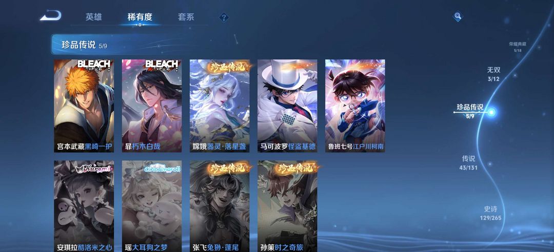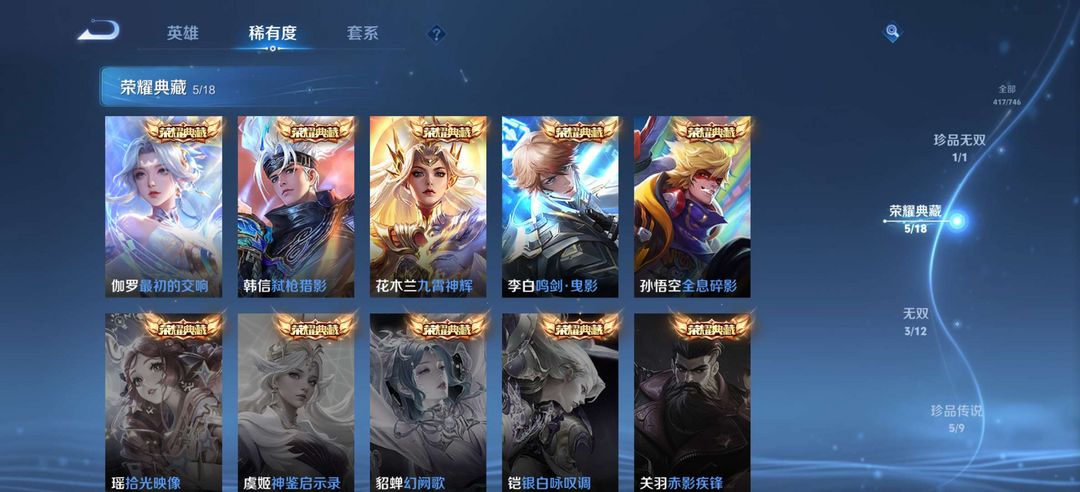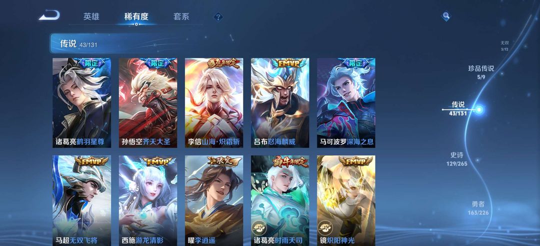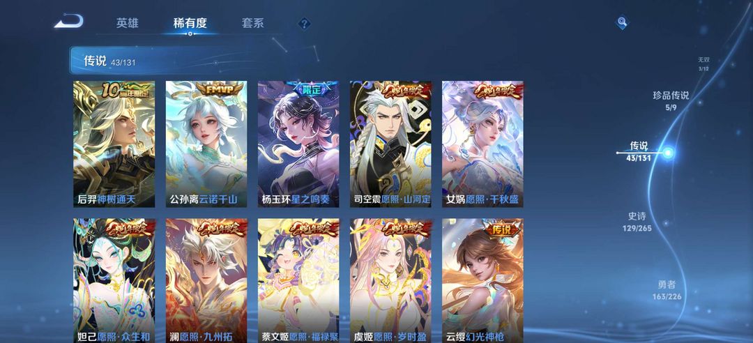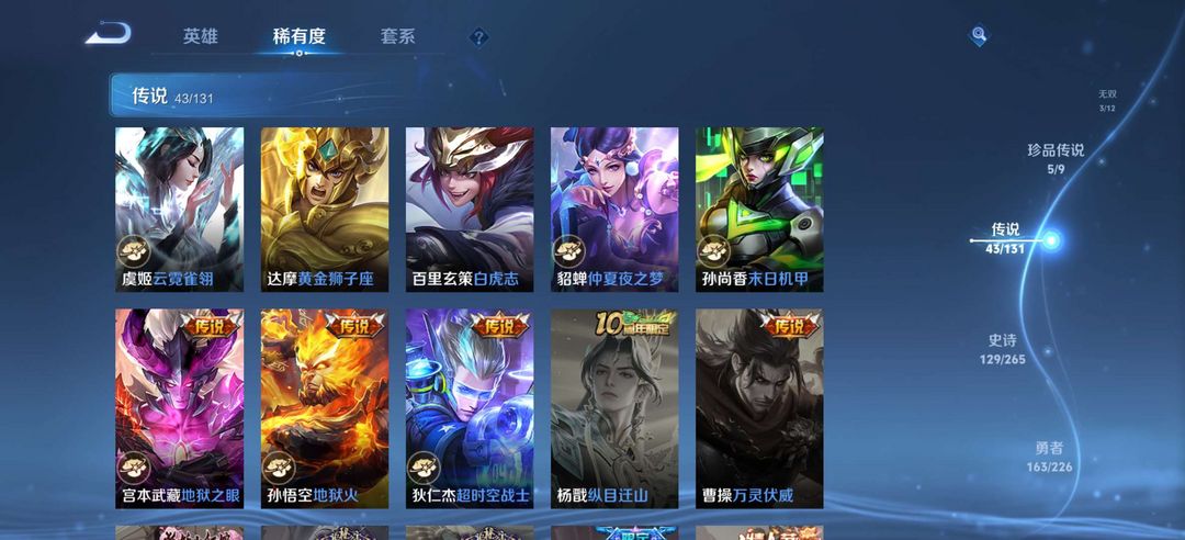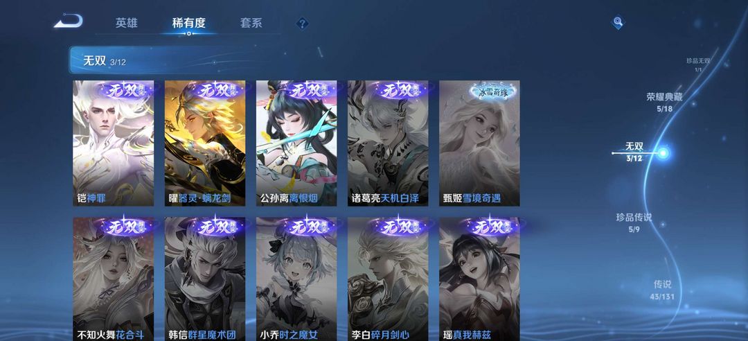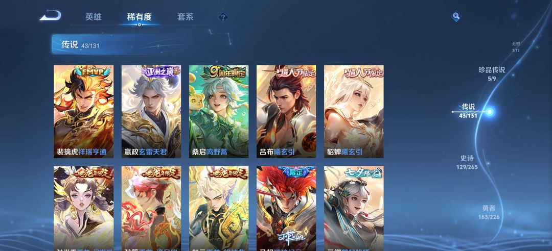 貂蝉珍品无双馥梦繁花,5典藏,3无双,5珍品传说,43传说,129史诗,可排位