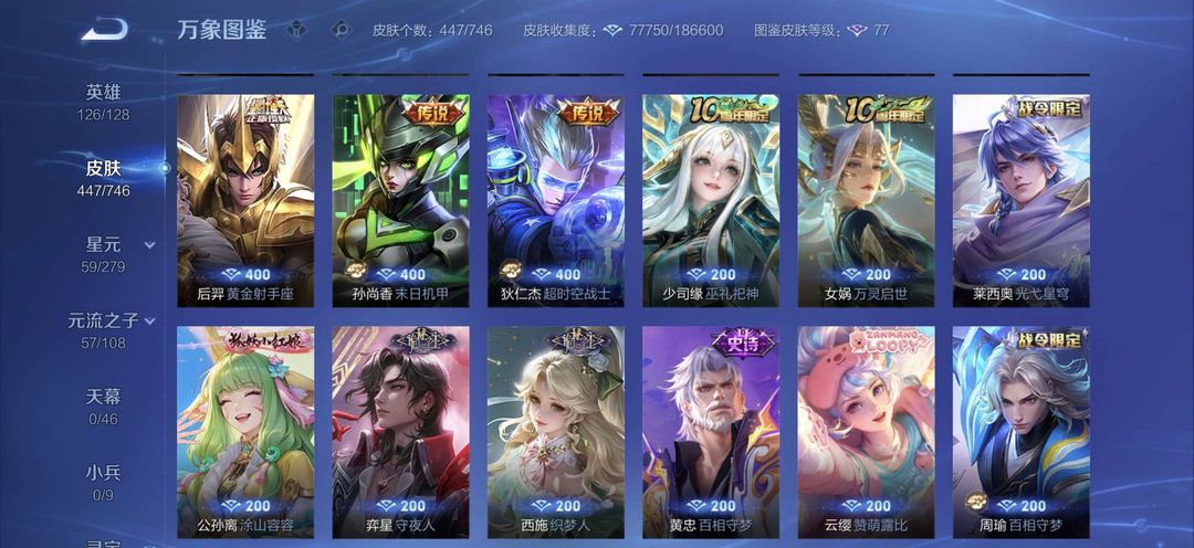 毁号,涉及毁坏虚拟财产罪及计算机安全罪,请文明游戏素质游戏,让我们共建美好租号平台 本游戏账号: 英雄多皮肤多。典藏皮肤2个感受典藏皮肤带来的优质体验快感FMVP皮肤5个尽情享受FMVP皮肤带来的主角光环 私人所属英雄皮肤有:韩信 弑枪猎影花木兰 九霄神辉达摩 黄金狮子座李信 一念神魔孙尚香 末日机甲孙尚香 乘龙·问璇玑大乔 时之奇旅墨子 黄金天蝎座狄仁杰 超时空战士狄仁杰 夜礼服假面王昭君 乞巧织情虞姬 启明星使孙策 挚爱之约孙策 末日机甲孙策 乘龙·淬吴钩赵云 乘龙·铭钟鼎亚连 落雪白狼小乔 音你心动露娜 霜月吟公孙离 祈雪灵祝伽罗 太华等等 注意事项: A.游戏过程中请不要恶意挂机或者不文明发言B.恶意挂机、顶号等行为将被拉黑无法再次下单C.进入游戏后中途请勿退出登陆,否则无法再次上号D.部分账号由于异地登录可能会出现密码错误提示,通常再尝试5-6次后可上号。 喜欢本账号请点 ☆收藏☆ 方便下次租用,谢谢光临惠顾毁号行为涉及毁坏虚拟财产罪及计算机安全罪,请文明游戏素质游戏,让我们共建美好租号平台!