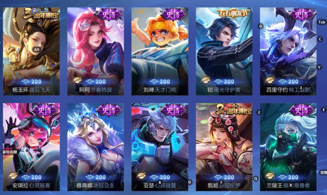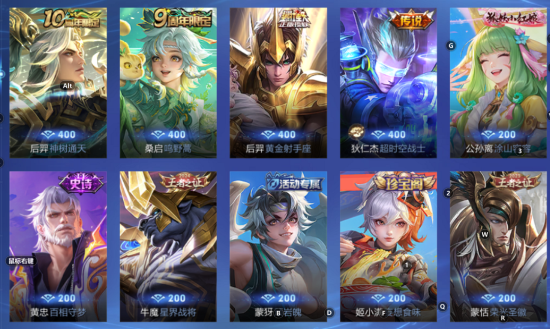 史诗勇者皮肤很全,赛季传说限定和普通传说有七八个,全英雄全英雄有皮肤全铭文,满信誉,金币钻石碎片多到溢出