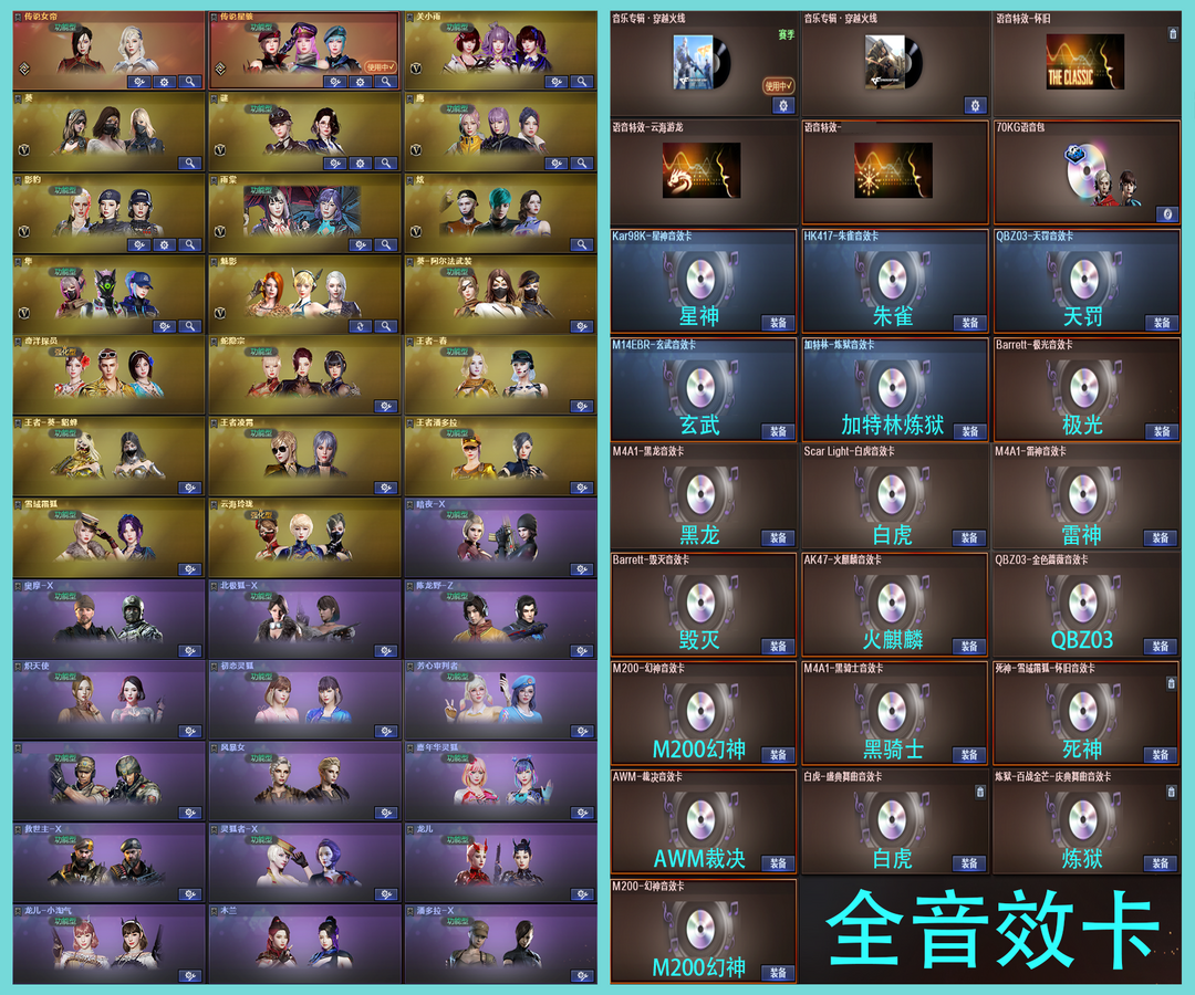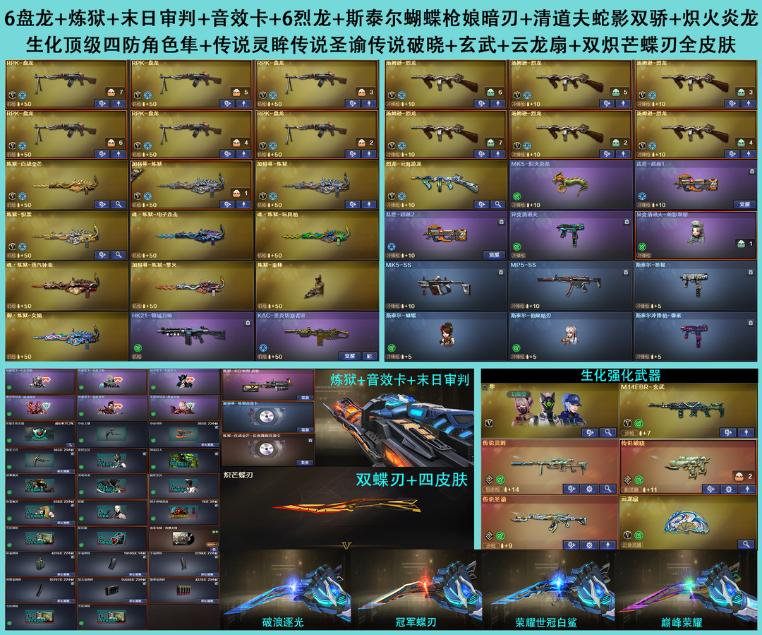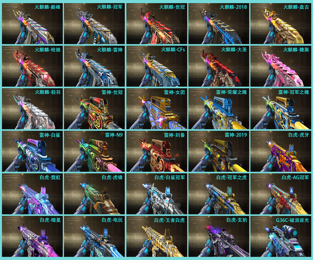 玄豹套装,FAMASG2天戎【传说女帝,传说星骇,传说圣谕,传说灵眸,传说幽瞳,传说梦魇,传说破晓,传说幽冥】炽芒蝶刃,炽芒蝶刃巅峰荣耀,炽芒蝶刃荣耀世冠白鲨,冠军炽芒,炽芒蝶刃破浪逐光【幻神荣耀世冠EP,幻神AG,幻神动感闪耀,幻神AGCFPLS24冠军,幻神荣耀世冠白鲨2023,幻神星耀,幻神传奇欧欧,幻神Heartshot,幻神星火小队签名臻藏版,幻神曹操,幻神N9,幻神宠儿,幻神冠军之幻,王者风神】【星神冠军之星,星神AG,星神巅峰荣耀,星神黯钢战甲,王者星霆】裁决流光秘银,裁决巅峰荣耀,裁决典雅胡桃,QBZ03冠军之薇,QBZ03金色蔷薇斗鱼,QBZ03传奇宠儿,QBZ03金色蔷薇拼搏,幻影破浪逐光,白虎虎牙,白虎虎啸,白虎冠军之虎,白虎白鲨,白虎AG【柯尔特冠军之特,柯尔特竞技荣光,柯尔特荣耀世冠EP,柯尔特荣耀世冠白鲨2023,柯尔特无冕之王,荣耀世冠柯尔特,USP冥王,COP357幻灵,COP357雷霆,COP357雷霆王者,COP357云龙,USP雷暴,USP雷暴王者,USP神工天巧】Knife冠军之刃,Knife荣耀世冠EP等等生化满配,挑战满配,爆破全装满配。