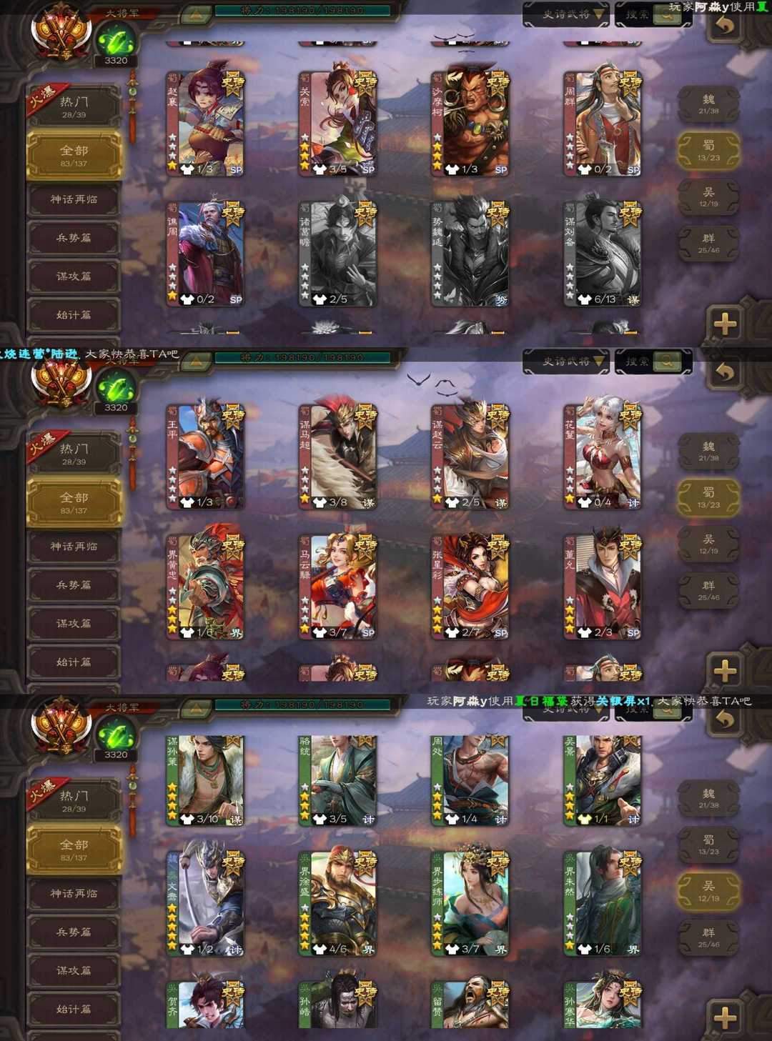 - 史诗武将数量