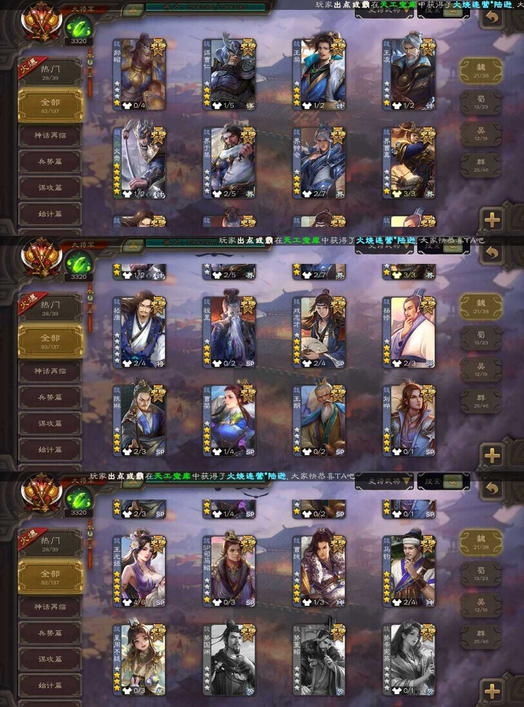【免费点将】v14动态五巨头⚡动态神司马懿⚡十常侍动态文鸯⚡天子令谋孙策⚡奇门孙寒华⚡双形态杜预⚡ 魏:曹婴 戏志才 马钧 王元姬 谋曹仁 界钟会 动态文鸯 蜀:谋马超 谋赵云 界黄忠 谯周 吴:天子令谋孙策 动态界徐盛 留赞 孙寒华 群:徐荣 十常侍 南华老仙 审配 谋貂蝉 杜预 谋公孙瓒 神:神曹贼 神甘宁 神张辽 神荀彧 神郭嘉 神太史慈 神孙策 神司马懿