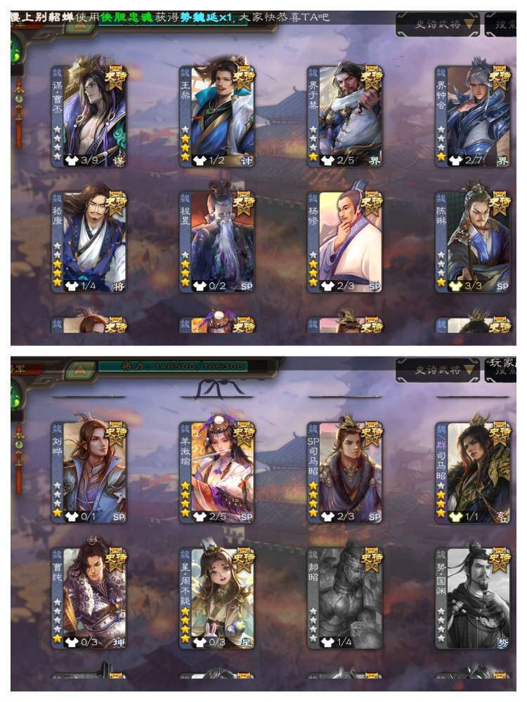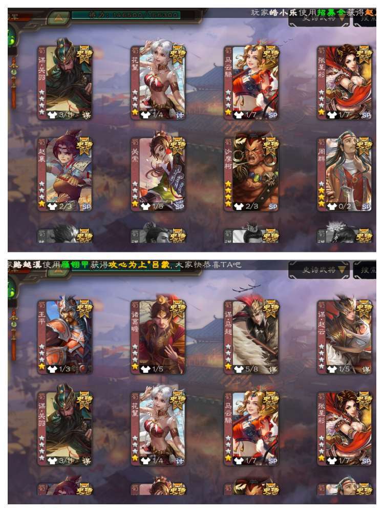 羊微瑜,双形态司马昭,星周不疑,群马超,马云禄,某关羽,谋赵云,张星彩,诸葛瞻,王平,花鬘,神刘备,大宝