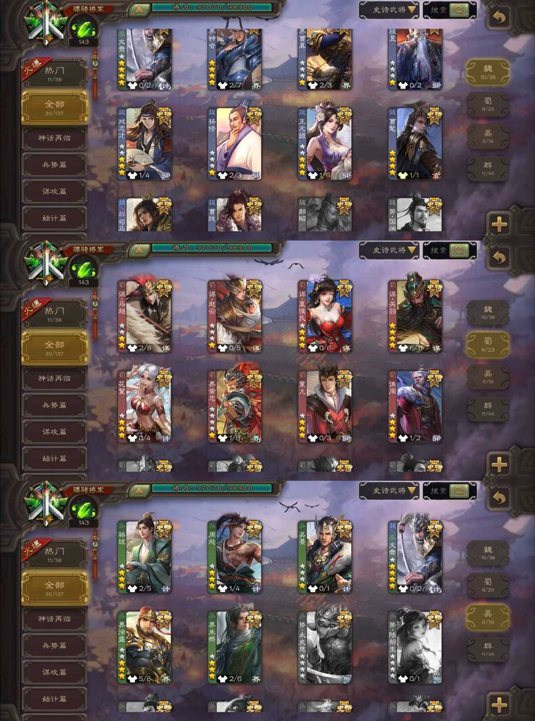 - 史诗武将数量