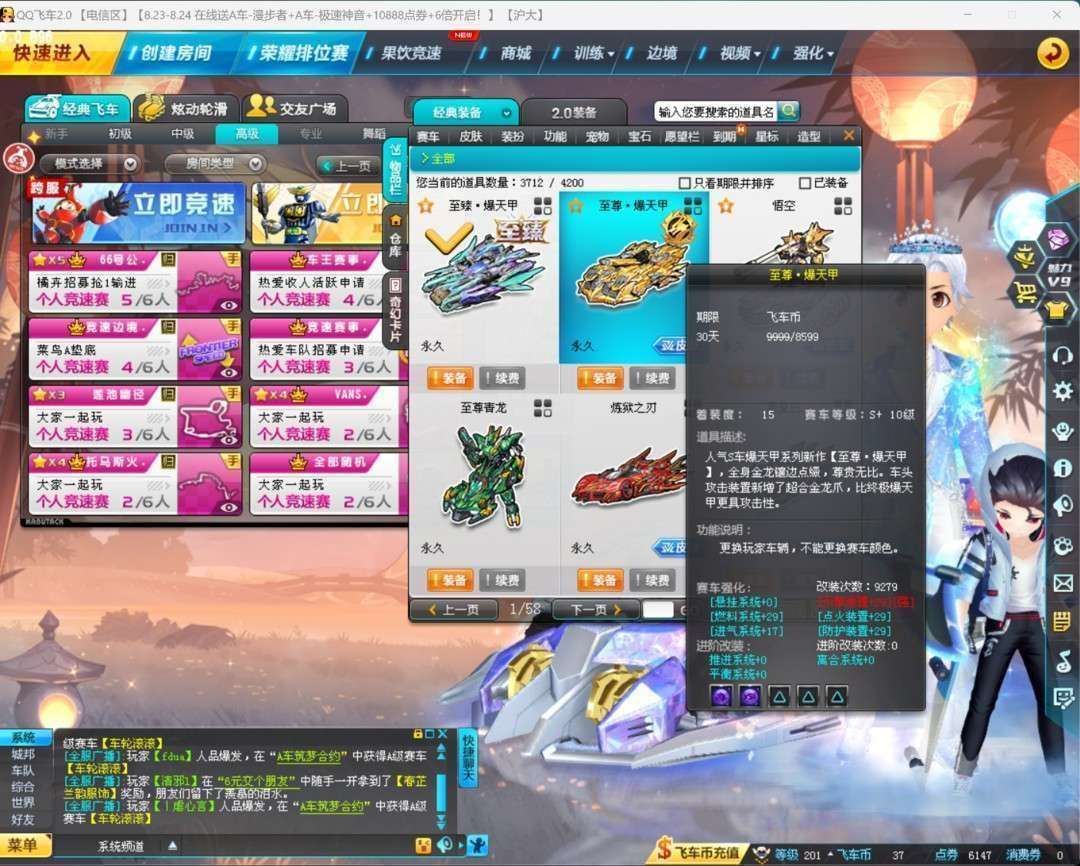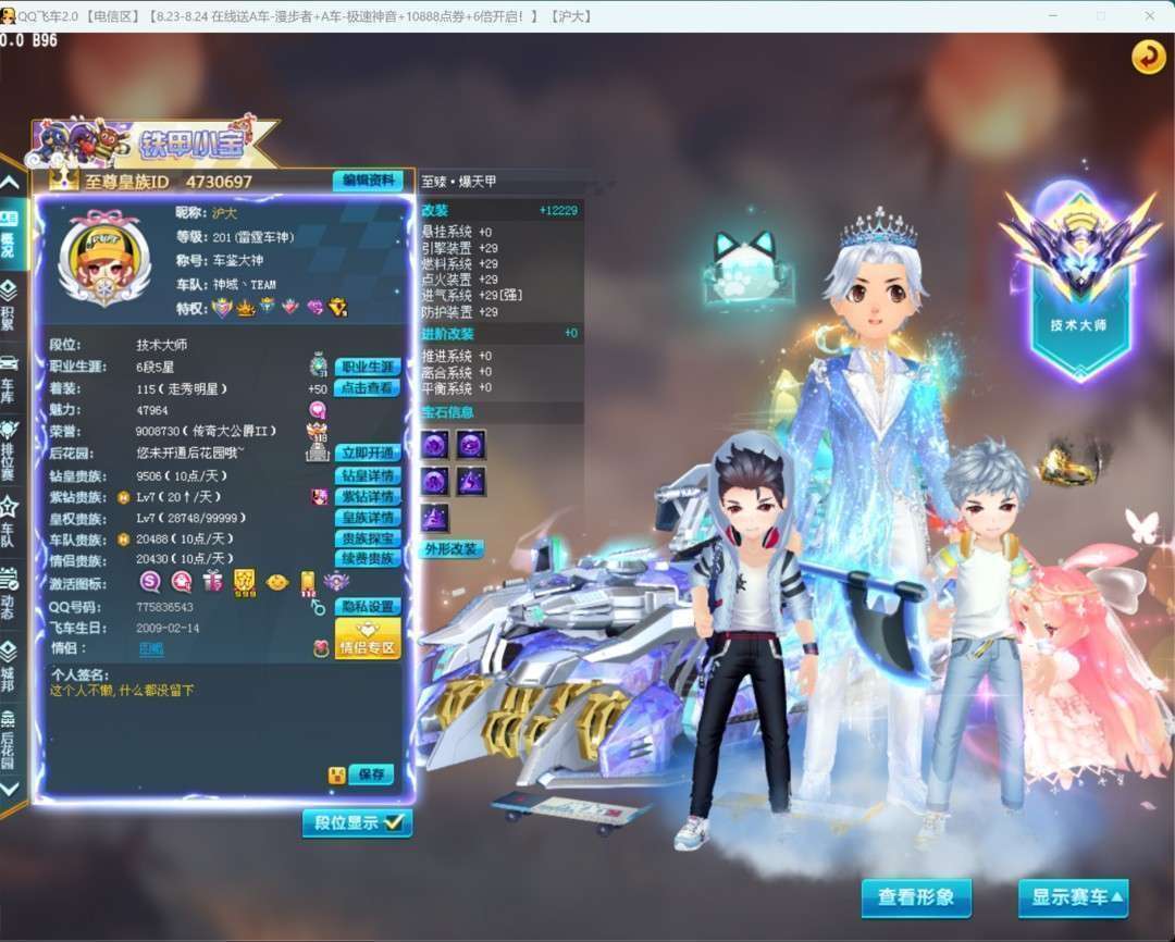 钻7 至臻爆天甲三颗四级 改装29 至尊爆天甲双四级宝石 6辆永久S车 斗战胜佛 S黄金追魂 风怒 炼狱之刃 2辆T2悟空 五级皮肤 铁甲巨龙 T1 朱雀 至尊青龙 战魂 噬魂金甲 多辆永久A 雷诺 针尖 最强竞速宠 游鸿蓝鲸强化10 齐天大圣强化10 子鼠10 艾丽莎强化10 飞碟改装全29四级宝石 各种悬浮套装 动作套装男宫宴黑玫套装 如果冻结申请号主协助 然后重新登录