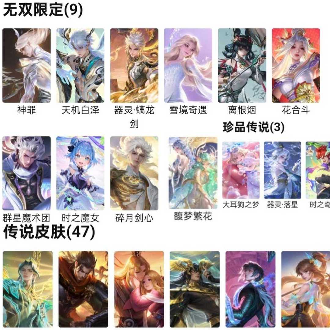 十无双超豪华账号/珍品传说/2典藏/47传说/铭文拉满畅玩