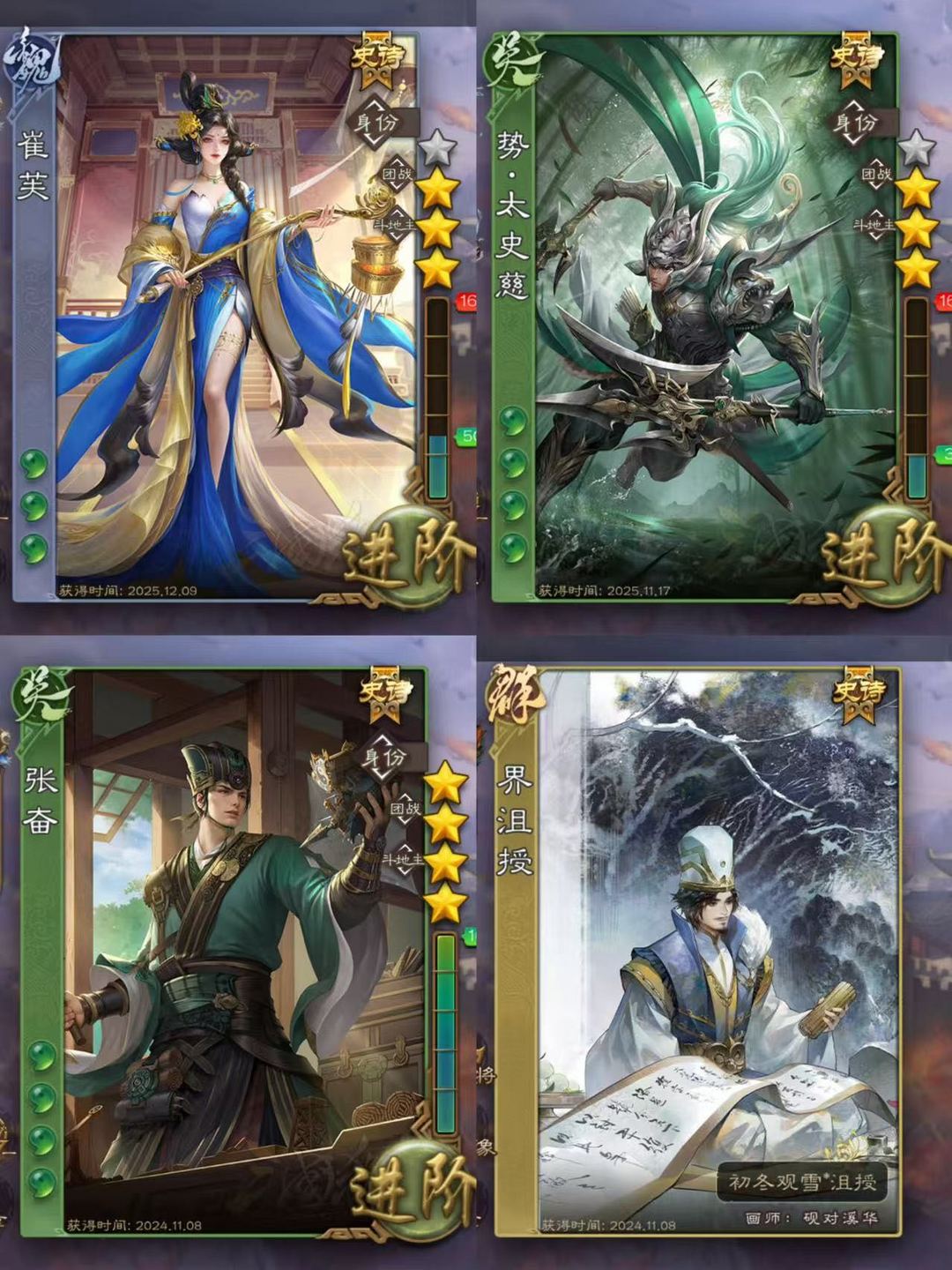 【有卡三卡】动崔芙/势太史慈/金皮界沮授/张奋/友徐庶/阎象/sp曹操/回廊动界蔡夫人/许攸骆统星甘宁