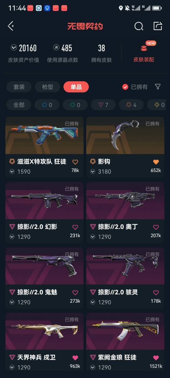 - 皮肤资产价值:20160