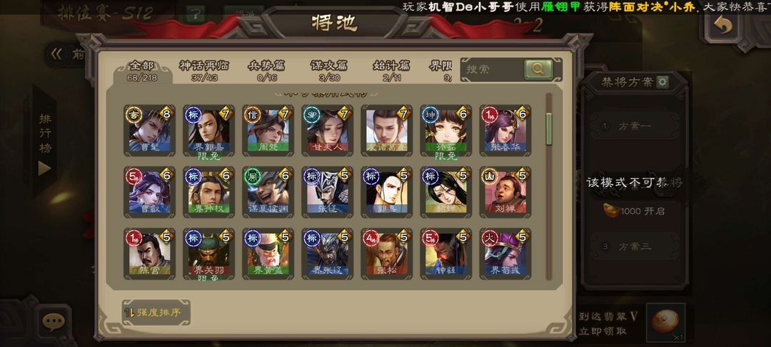 68排位武将★7史诗枭龙破渊曹髦友诸葛亮周处戏志才张让双形态曹髦回廊曹髦谯周动界孙权动甘夫人张春华曹叡谋夏侯渊崔琰谋卢植谋周瑜界孙尚香鲁芝贾充