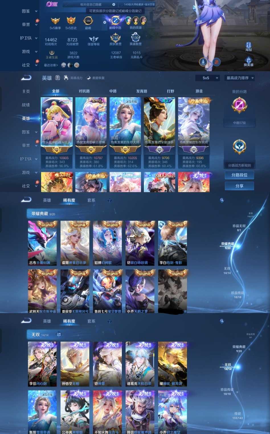 时间到了还登录白玩或者顶号全部改密拉黑处理永不解除,顶号机器会秒禁玩改密,顶号不仅拉黑还没得玩,赚三两块不容易,请理解谢谢。 ❤❤❤❤❤❤❤❤❤❤❤❤❤❤❤❤❤❤❤ 请勿开挂,挂机,送头,骂人,撤单后游戏等如有违规永久拉黑永不解除。 重置二级密码不要费劲了,号主每天都会上号查看,多行不义必自毙,人在做天在看,多做好事多自律,少做缺德事。 该号英雄130个皮肤748个,典藏10个,无双14个,珍品传说10个,星传说9个,传说133个,史诗263个,祝您游戏愉快~