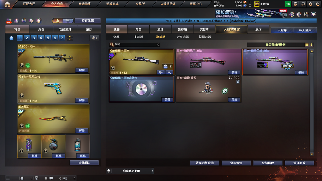 传说影煞⭐️传说圣谕⭐️11音效卡⭐️幻神三件套【5质量皮】⭐️星神三件套⭐️裁决三件套⭐️白虎三件套⭐️qbz三件套⭐️毁灭三件套⭐️雷神三件套⭐️黑骑士三件套⭐️G36C幻影⭐️M14EBR-玄武⭐️炽芒蝶刃⭐️10质量手枪⭐️4usp冥王⭐️3cop云龙⭐️冠军之特⭐️柯尔特白鲨⭐️cop雷霆⭐️3丛林匕首-玄豹⭐️幻神宠儿⭐️幻神荣耀世冠白鲨2023⭐️幻神星火小队⭐️幻神冠军之幻⭐️王者白虎⭐️qbz-王者蔷薇⭐️qbz-天罚⭐️各种皮肤具体看图⭐️