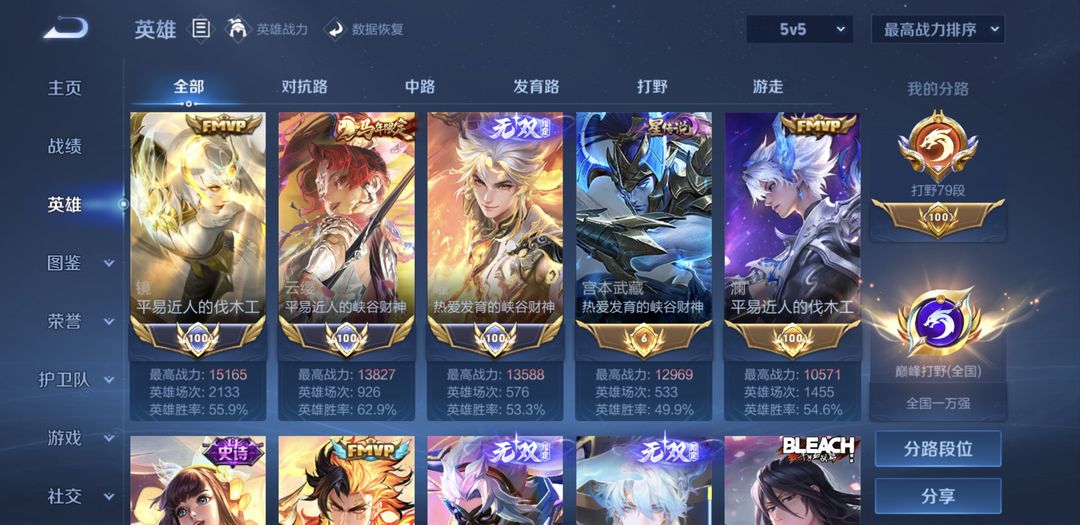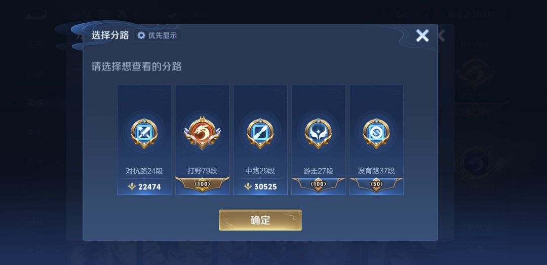 - 段位:荣耀王者