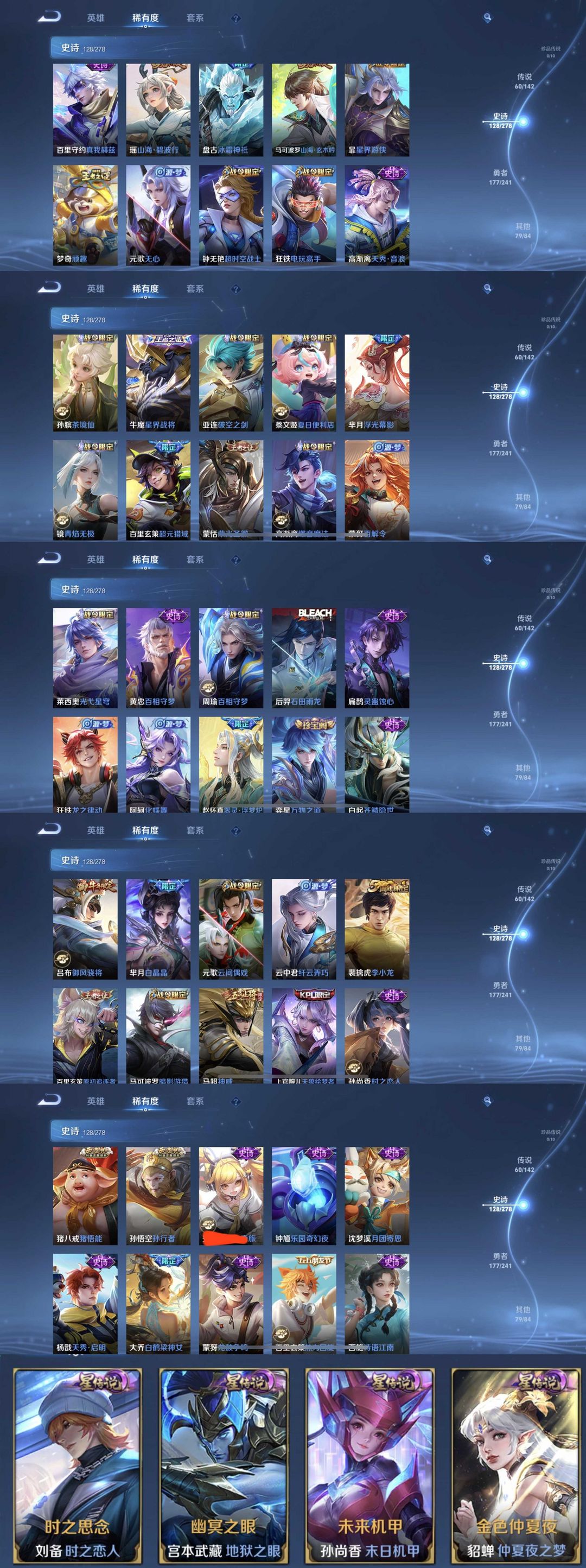 到时间不下拉黑处理永不解除,顶号机器会秒禁玩改密,顶号不仅拉黑还没得玩,赚三两块不容易,请理解谢谢。 ❤❤❤❤❤❤❤❤❤❤❤❤❤❤❤❤❤❤ 请勿开挂,挂机,送头,骂人,撤单后游戏等如有违规永久拉黑永不解除。 重置二级密码不要费劲了,号主每天都会上号查看,多行不义必自毙,人在做天在看,多做好事多自律,少做缺德事。 该号英雄129个皮肤451个,典藏4个,无双3个,星传说4个,传说60个,史诗128个,祝你游戏愉快~