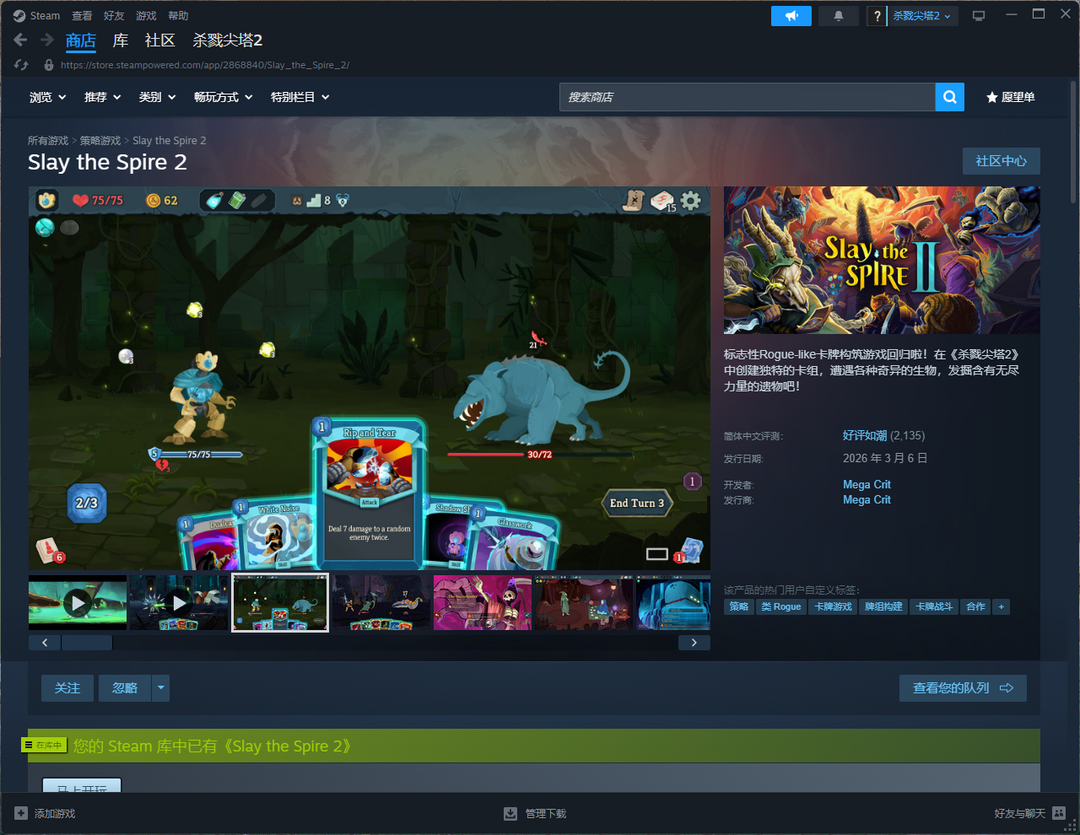 标志性Rogue-like卡牌构筑游戏回归啦!在《杀戮尖塔2》中创建独特的卡组,遭遇各种奇异的生物,发掘含有无尽力量的遗物吧!