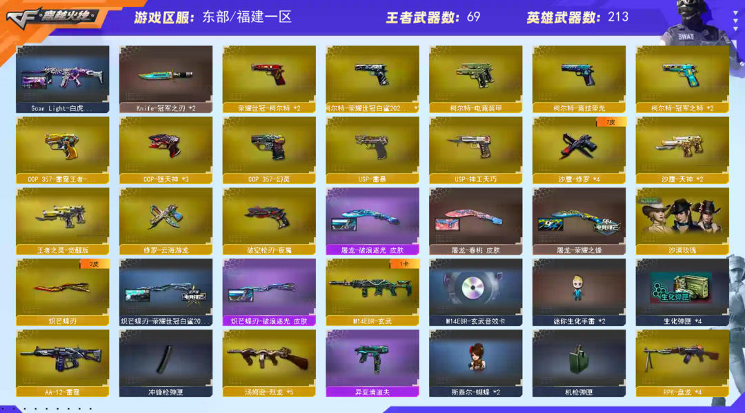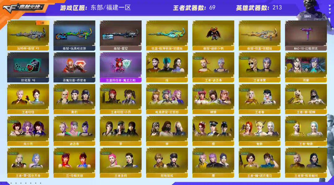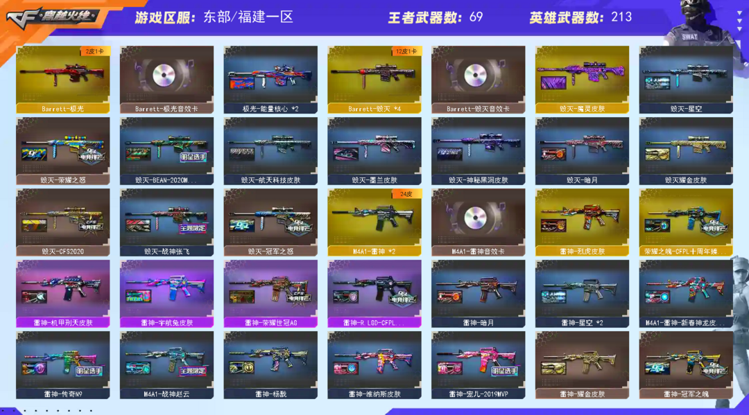❤清道夫❤传说光辉光耀圣灵梦魇暗裔女帝王者幻神是觉醒的❤请勿开挂❤缺什么细节记得留言我看到就补.❤好玩记得收藏哈❤跪求科技大神求放过此号❤谢谢好人一生平安❤可于东部所有大区同玩❤主流光效全齐❤ 稀有皮肤:❤黄忠❤冠军之魄❤轻羽❤华夏之心❤战神马超❤冠军之势❤冠军之心❤2018毁灭❤2019雷神❤传奇N9❤毁灭2020❤雷神耀金❤传奇EVEN❤冠军之怒❤白鲨14冠军❤AG15冠军❤黑骑士耀金❤典韦❤霓裳❤火麒麟2018❤荣耀之魄❤荣耀之锋❤荣耀之怒❤墨子❤幻神宠儿MVP❤ 稀有武器:❤m4青龙❤雷暴ak❤堕天神m4❤HK朱雀❤传说光耀❤朱雀毁灭❤98k❤网剧套❤雷神精英刀锋❤火麒麟绝迹❤火麒麟灵狐❤cop白鲨❤巴雷特零❤斯太尔蝴蝶❤金刚伞❤cat❤cat刀锋❤m37葵❤cop旗袍❤降世魔童❤ 角色:❤王者春❤新海豹❤热舞青春❤职业经理❤王者葵貂蝉❤国色天香❤闭月羞花❤ 王者:❤炎心❤城❤心❤翼❤影❤鲨❤冰魄❤幻❤戮❤魄❤势❤武❤幻神❤光❤决❤力❤怒❤灵❤刺❤锋❤击❤啸❤ 炫金:❤火麒麟❤无影❤武士❤黑龙❤雷神❤骑士❤毁灭❤天龙❤修罗 音效卡:❤黑龙❤极光❤毁灭❤黑骑士❤火麒麟❤雷神❤