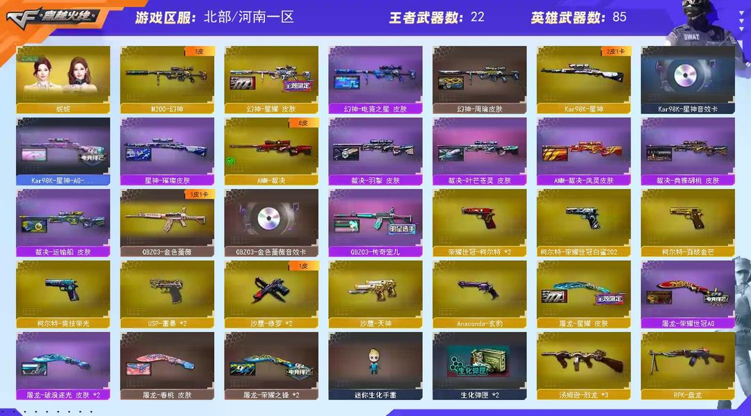 北部可排位爆破生化号usp雷暴白鲨柯尔特qbz幻神98kAG耀世冠套经济荣光套精品皮肤音效卡炼狱猎龙